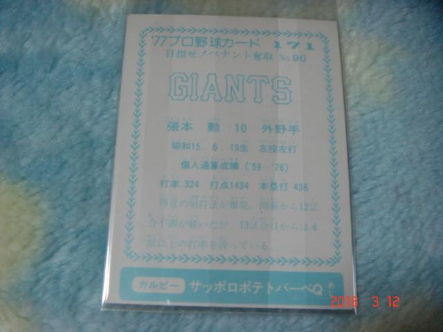 *カルビー '77年 プロ野球カード 『目指せ!ペナント奪取』NO.171(張本/巨人) 青版*