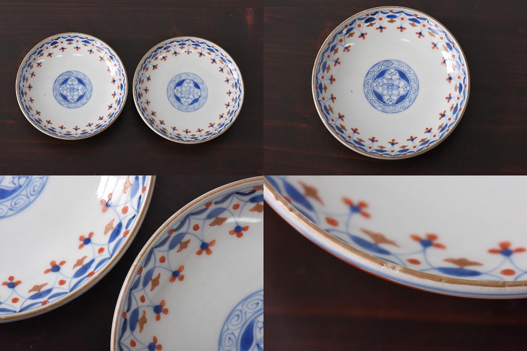 江戸期 大明成化年製 古伊万里 赤絵南蛮図染付 蓋茶碗2個セット(1)