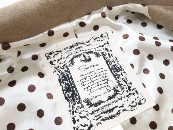Sureve サイズ表記:M バスト:79-87・身長:154-162 お色め:キャメル 系 表地:ポリエステル97%・ポリウレタン3% 裏地:ポリエステル100% ●平置き採寸●(参考) 肩幅(肩線~肩線)/約39cm 身幅(脇下)/約46cm 袖丈/約58cm 着丈/約58cm 腕に引っかかり線があります。 未使用品ですが、自宅保管にご理解頂ける方のご入札ご検討願います。 ◆細かい点(ご利用に問題のない程度の小さな傷・汚れ等) は素人検品で見落としがある場合もございます◆ ◆洋服のようなものは保管・発送時のしわをご理解ください。 ◎照明・パソコンの色彩環境等の違いから 掲載の画像と実物の色味が若干異なる場合がございます。 ★送料について★ ◆お支払いは【落札金額+送料】です。 送料がかかることを考慮した出品開始価格を設定しております。 ◆11時頃までのご入金確認で当日発送を心がけておりますが 対応出来ないときもありますので ご入金確認後の翌日~3日程度の発送でご理解ください◆ ★長期のお休みは自己紹介にて記載しております。 お手数ですがお急ぎの場合は一読お願いします | |||