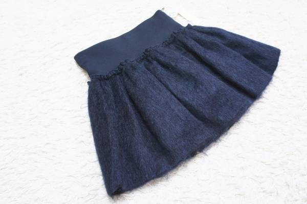 ラシュド【LA SUD】日本製*ウール地*ふんわりミニスカート*紺 M