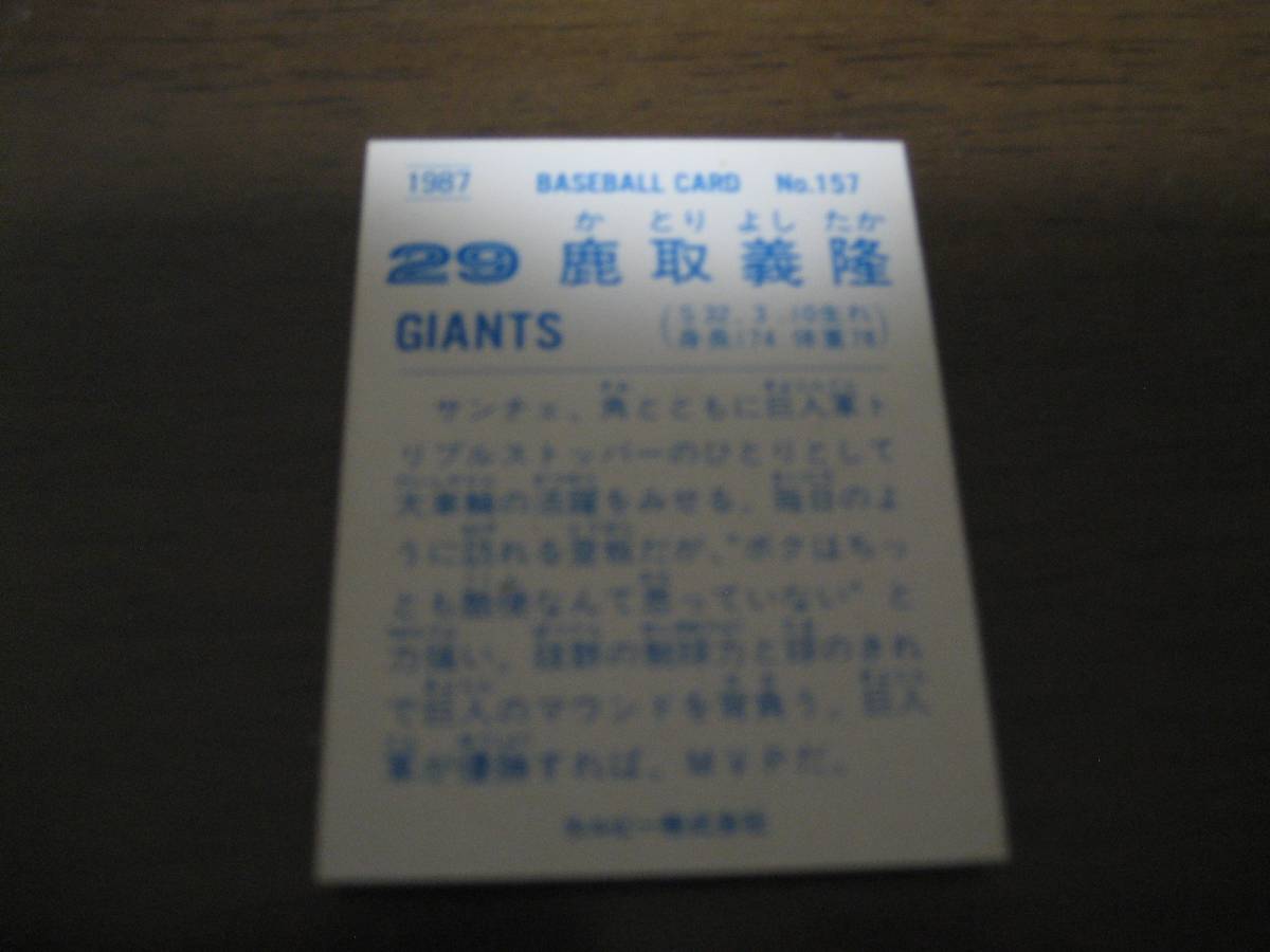 ■カルビー1987年/No157鹿取義隆/巨人 | ||
