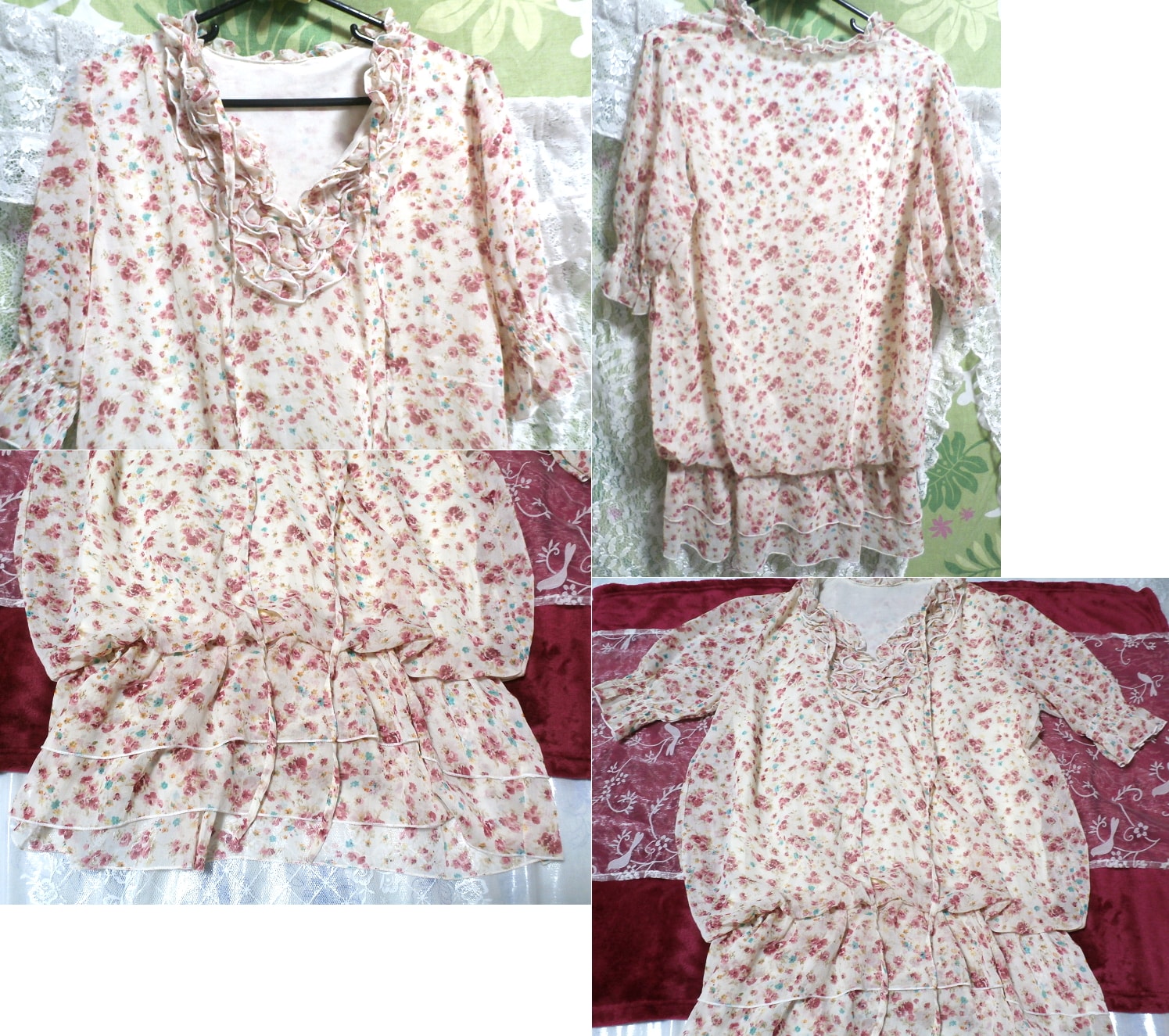 フリルネック花柄ネグリジェチュニックワンピース Frill neck flower pattern negligee tunic dress