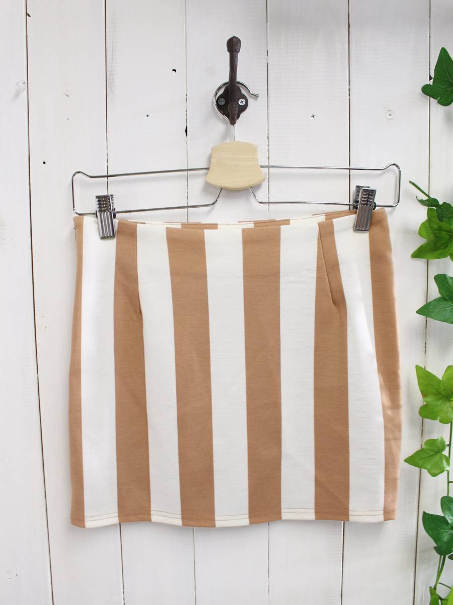 新品*b・r・u・s・h ブラッシュ brush*ストライプストレッチタイトミニスカート(2)ベージュ/定価5,900円*【586-8635】