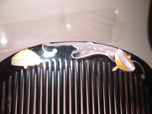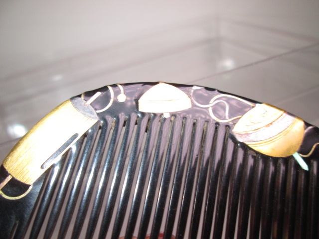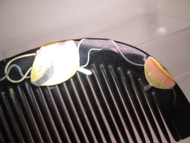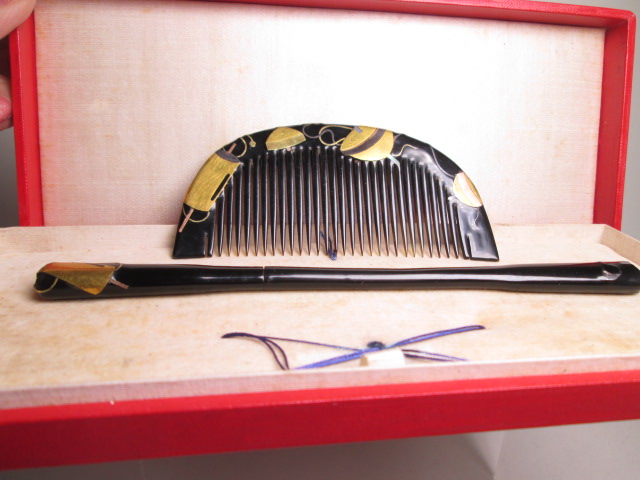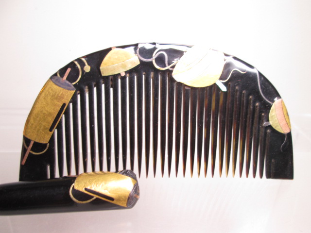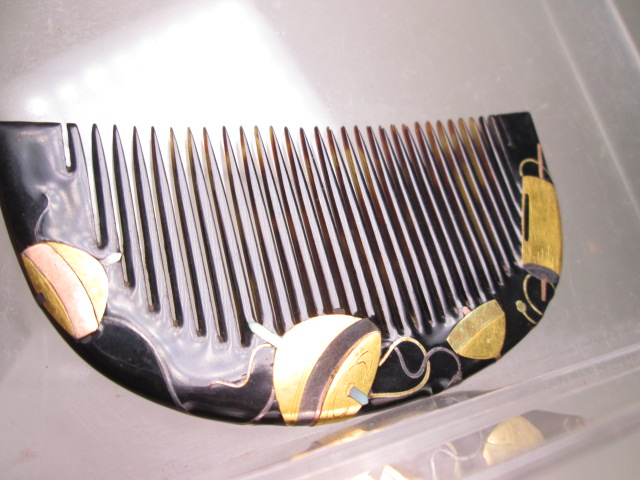 ☆アンティーク・本鼈甲金銀細工独楽の櫛&笄 共ケース付
