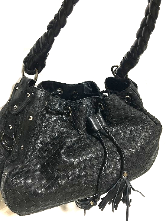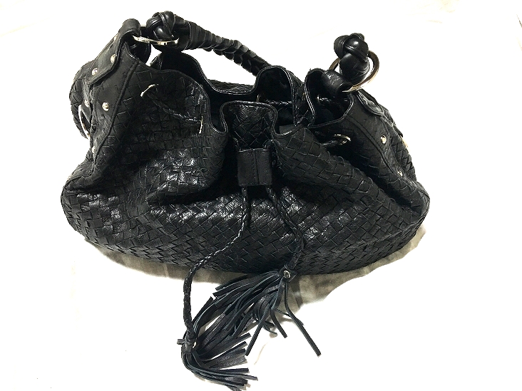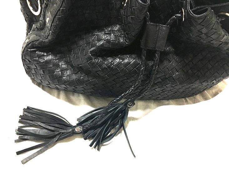 こちらはリアルオーストリッチ 編み込み タッセル 鋲 大き目 ショルダーバッグ トートバッグ ハンドバッグです。