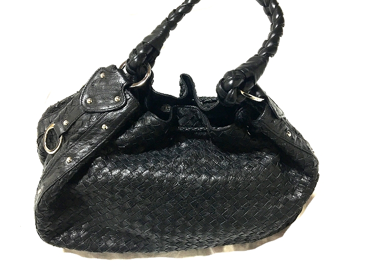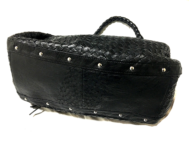【送料無料】リアルオーストリッチ 編み込み タッセル 鋲 大き目 ショルダーバッグ トートバッグ ハンドバッグ
