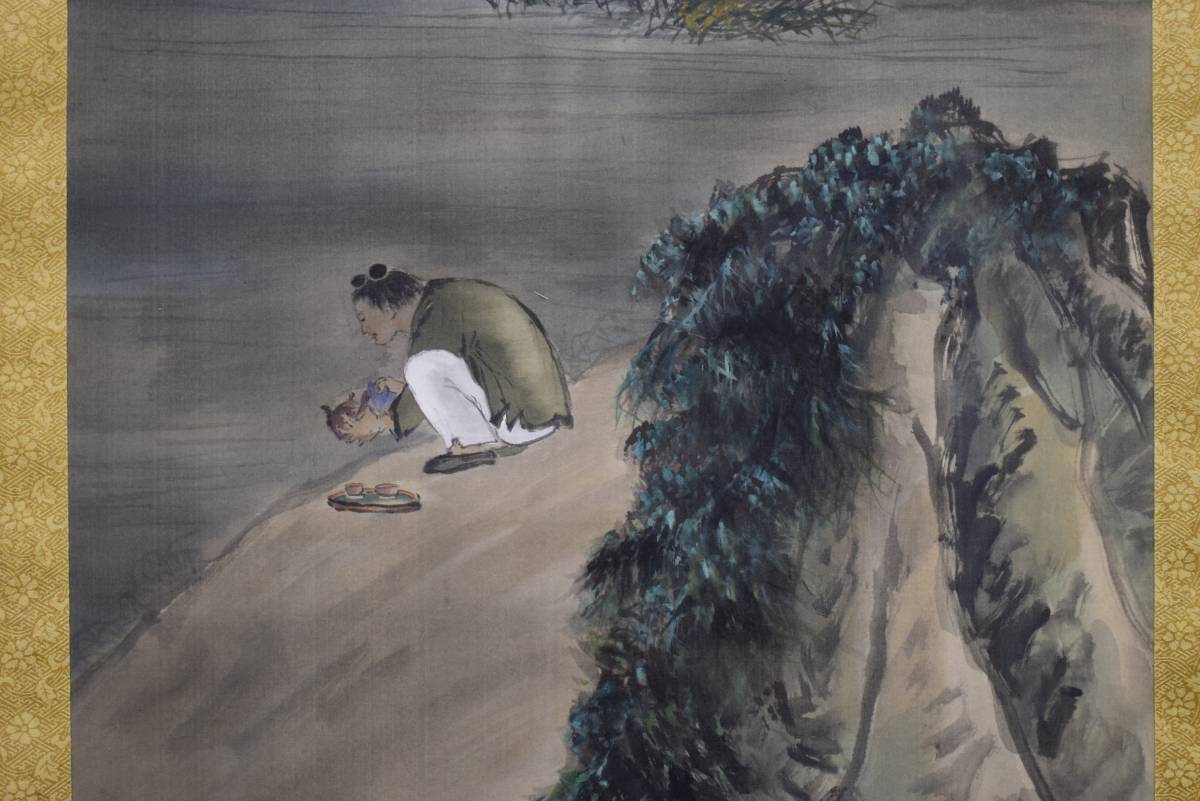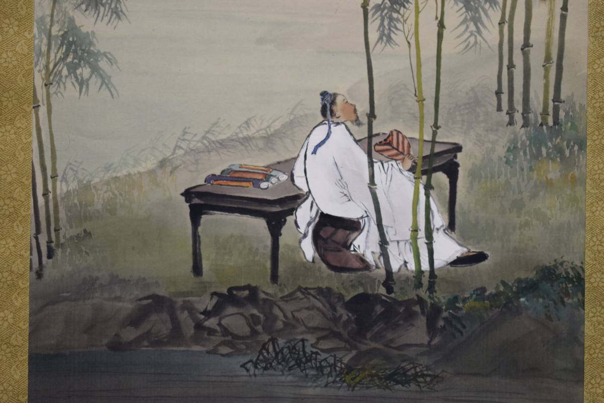 【真作】//秀峰/竹林高士之図/桐共箱付/布袋屋掛軸HE-70