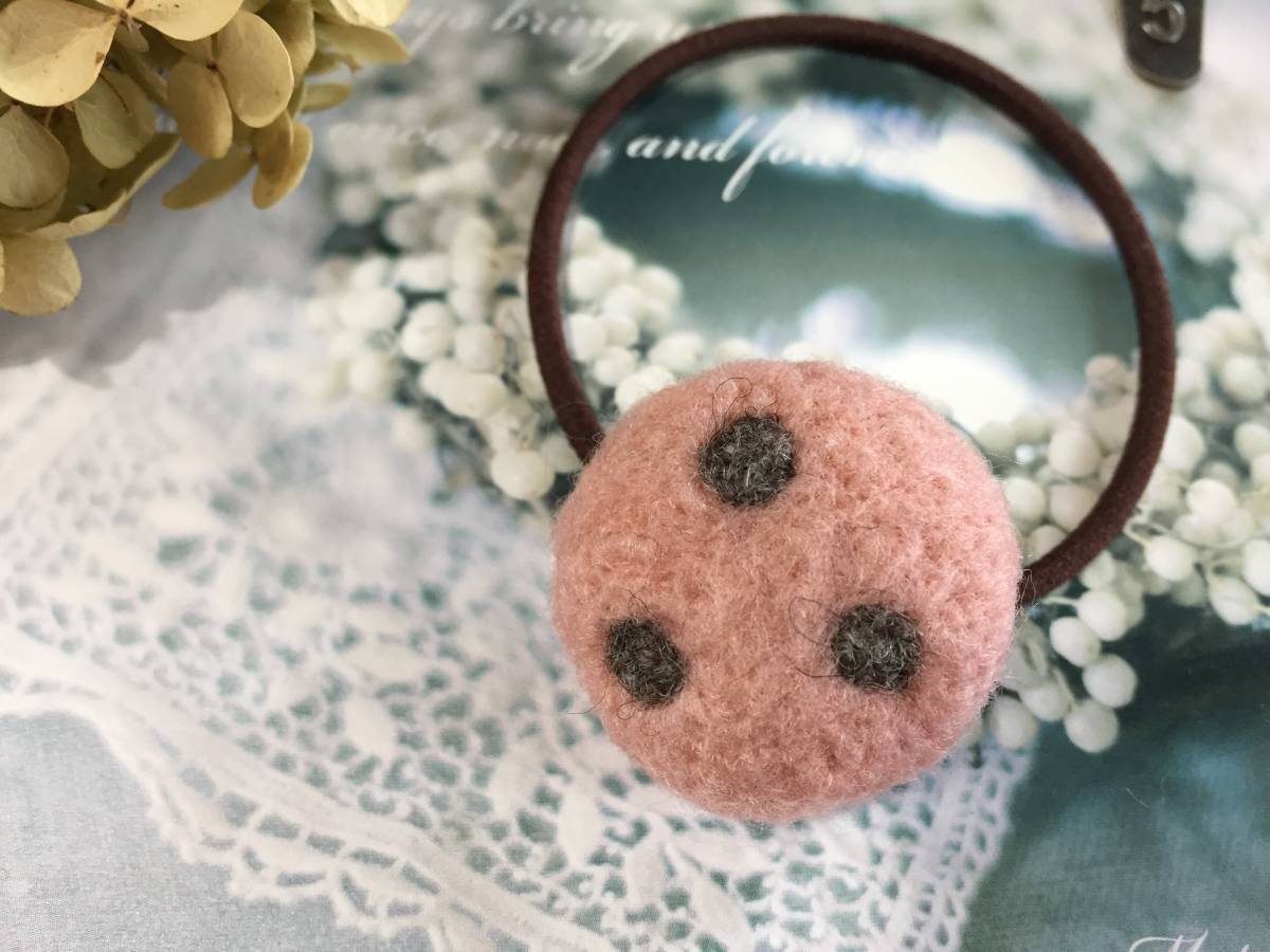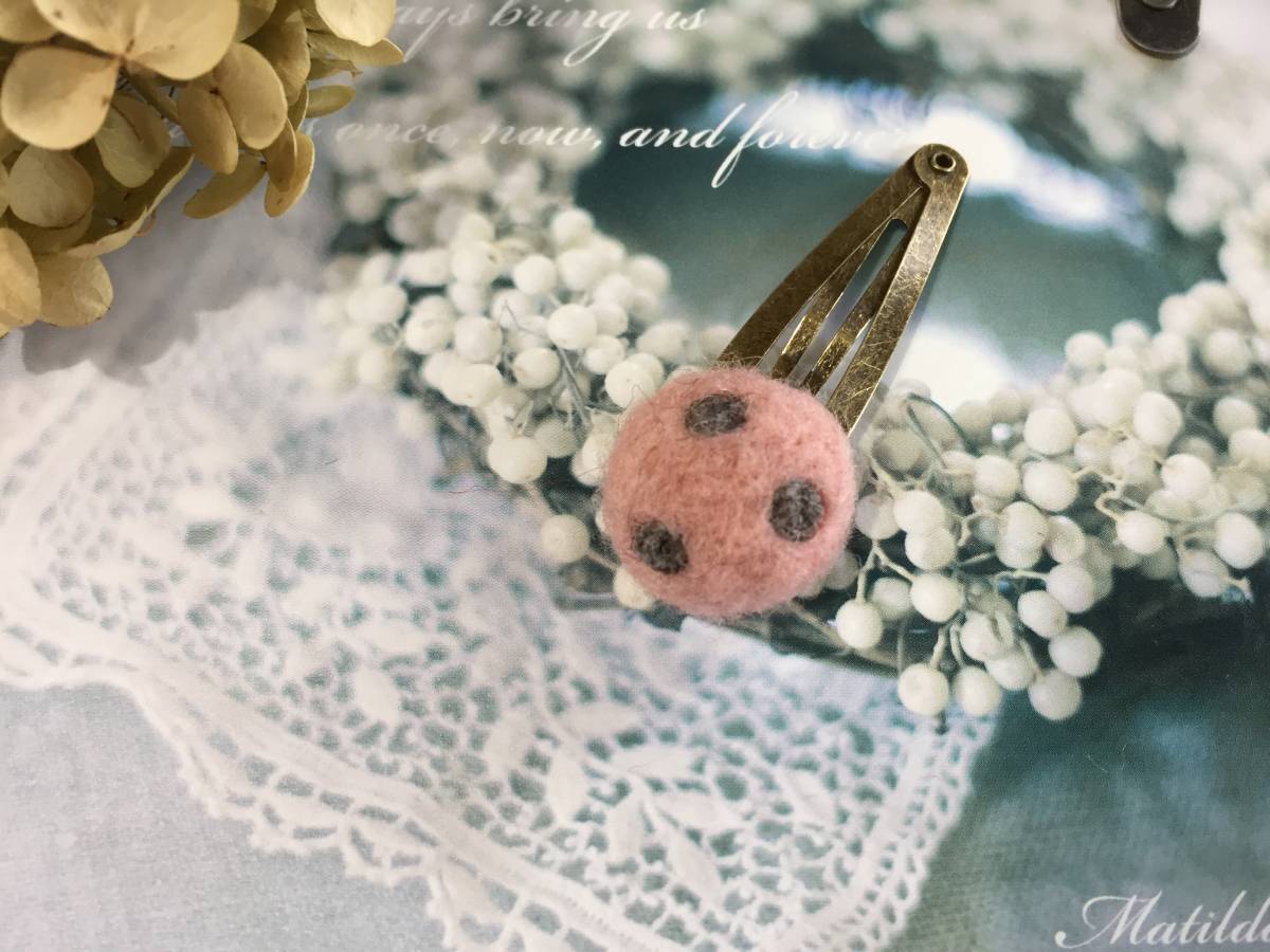 ハンドメイド 羊毛フェルト 水玉 北欧 ヘアピン ヘアゴム ピンク