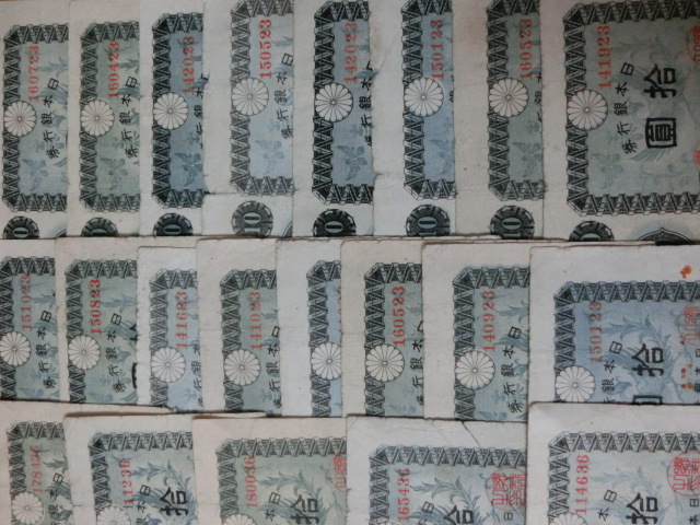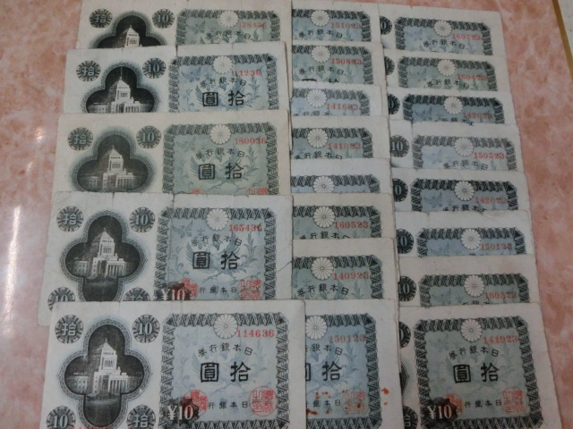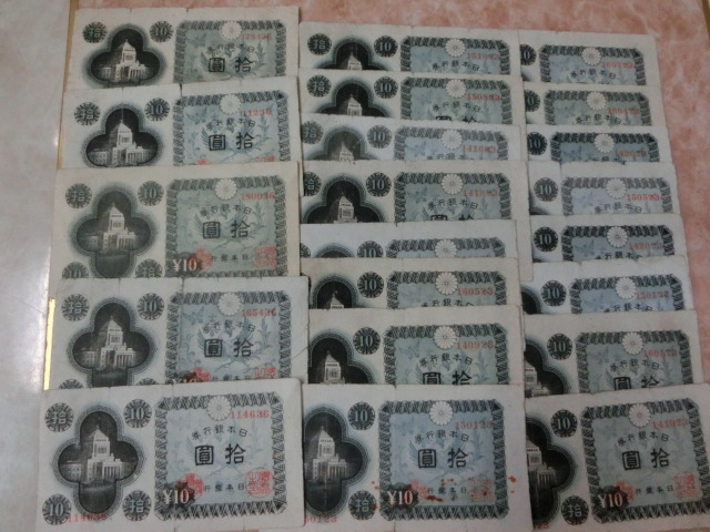 日本銀行券A号10円 議事堂10円 プレミアム印刷工場(36)武生工場 5枚・(23)富士工場 16枚の合計21枚です。