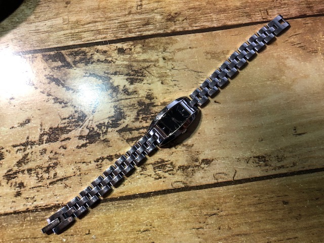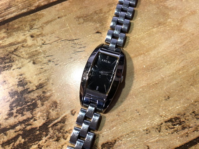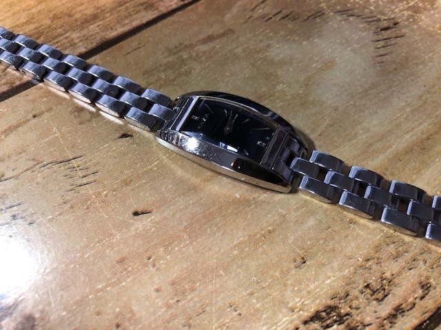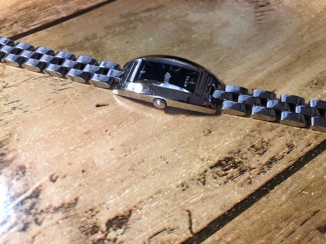 レア KRIZIA クリツィア SWISS MADE ブラック ダークストライプ文字盤 純正SSブレス クオーツ レディース 腕時計