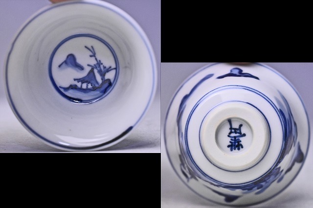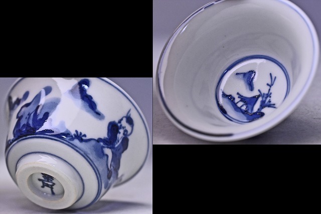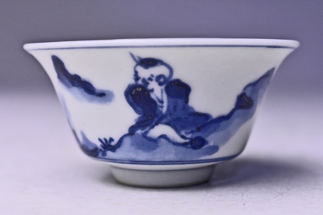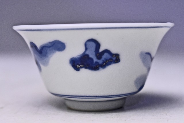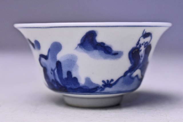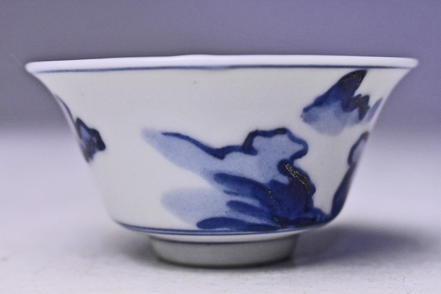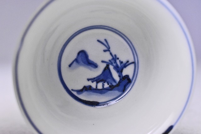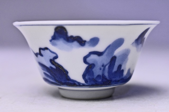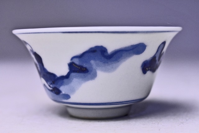 呉須の濃淡により 全体的に柔らかな 印象の 染付のぐい呑です。