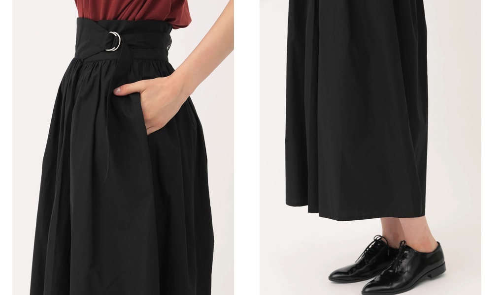 ウエストは太幅切替にすることでメリハリ感をプラスし、脚長なスタイルアップもさりげなくアシスト。