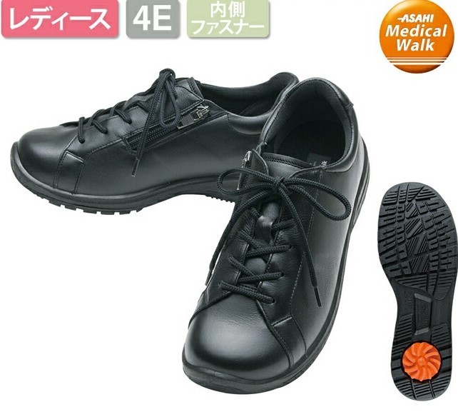 日本製アサヒメディカルウォーク WKL001 22.0㎝ ブラックメタリック 4E 幅広 内側ファスナー