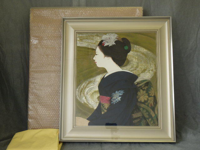 | ★商品説明★ | ![]() ![]() ![]() ![]() ![]() ![]() 《商品詳細 》 ◆真作 清水達三 日本画 「舞妓」 10号 希少 昭和40年代 凛とした表情 共シール タトウ箱 額装を出品致します。 ◆画寸 約45cm×52.5cm *素人採寸の為、多少の誤差はご容赦下さい。 ◆額寸 約63cm×70.5cm 厚み:約5.2cm ◆芸術愛好家の方がご購入されて大切に保管されていた作品です。額の紐を見て取れるように、ほとんど掛けてはいません。当時250万円でご購入されたそうです。 ◆昭和40年代に描かれた作品で、最近のかわいらしい感じではなく凛とした表情の作品で、今は大変貴重な作品となっております。 共シールは平成22年に清水達三先生ご本人に無理を言って書いていただいたそうです。 ◆付属品:黄布・共シール・タトウ箱・包装紙・作品写真の印刷物 ◆「真作」表記の出品で、所定鑑定機関により万が一「真作」でなかった場合には返品をお受け致します。 商品落札日から一週間以内に鑑定する旨をご連絡ください。 ◆一週間以内にご連絡の無い場合は、保証対象外となりますのでご注意ください。 《商品状態 》 ◆特筆するような汚れ等も見受けられず極美品です。 ◆額の裏板生地にごくわずかなスレがございます。 [ ※商品についての注意事項 ] ◆ いずれも画像を良くご確認頂き、ご自身の判断で納得されたうえで入札をお願い致します。 ◆ 画像につきましてはデジカメ撮影の為、実際の色合いと異なる事もありますのでご了承ください。 | |