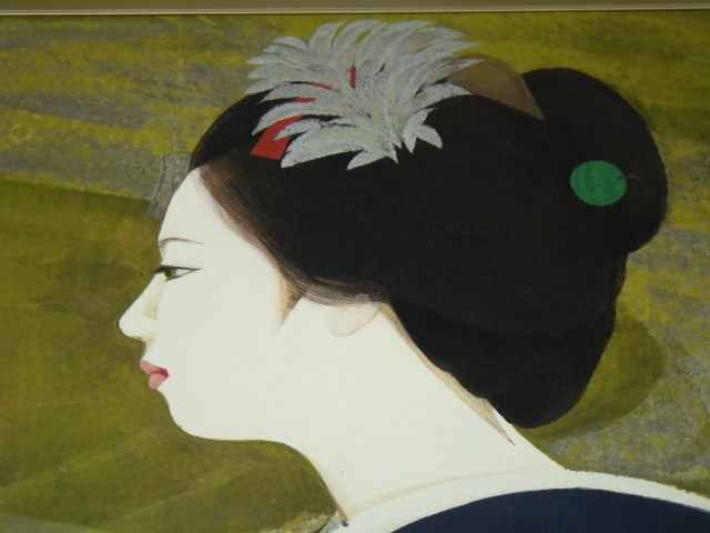 | ★☆h1G053Z m 真作 清水達三 日本画 「舞妓」 10号 希少 昭和40年代 凛とした表情 共シール タトウ箱 額装☆★ | ||