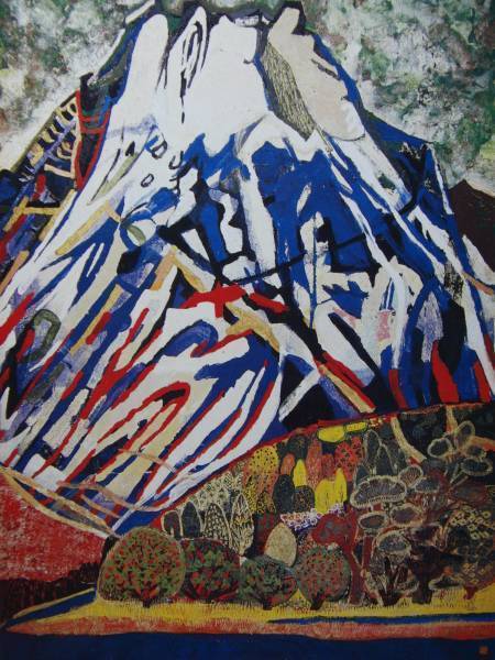 片岡球子、【山(富士山)】、希少な額装用画集より、新品額装付、状態良好、送料込み、富士