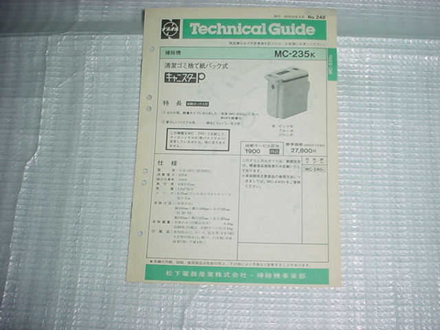 昭和58年8月 ナショナル 掃除機 MC-235Kのテクニカルガイド