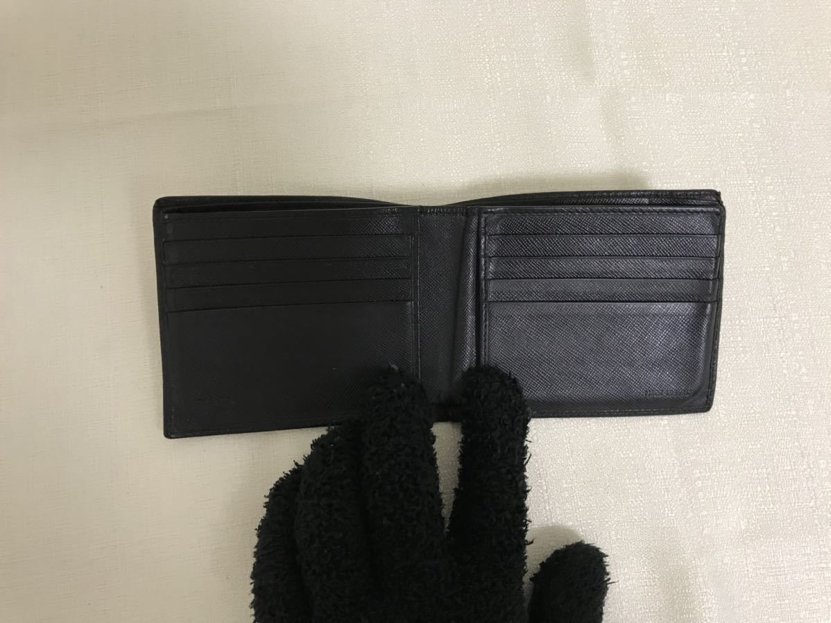 商品名:本物プラダPRADA本革サフィアーノレザー二つ折り財布サイフ札入れビジネススーツ旅行トラベル黒ブラックメンズレディース