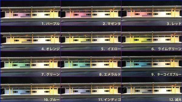 右端2灯は電球色フィルム、中央右側2灯はフィルムを貼っておりません。