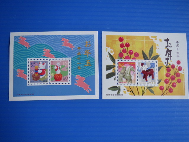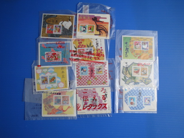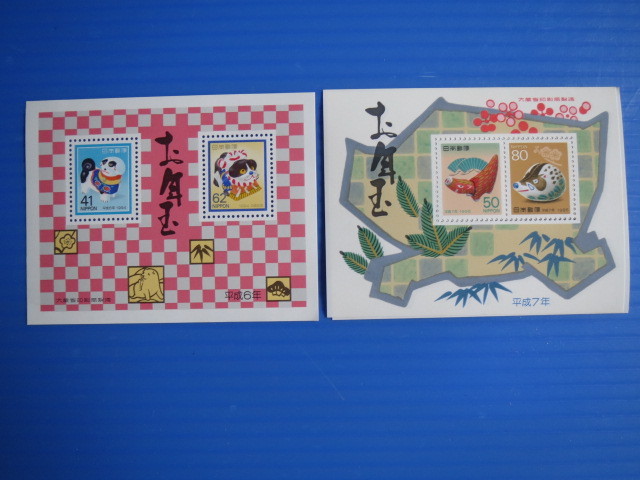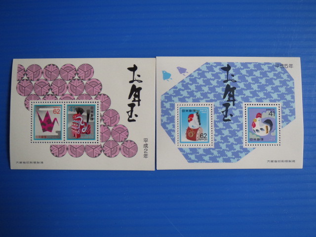 未使用切手、お年玉郵便切手シート18枚、平成2年~平成7年分。額面価格合計2,178円。10年以上眠っていました。紙の劣化、変色、ヨゴレ、シミ、キズ、折れ、など少々あります。年代物の許容範囲内と思いますが、トラブル回避のため十分 ご注意ください。写真で判断できる方の入札をお願いします。内訳、平成2年2枚(2シート)、平成3年なし、平成4年なし、平成5年3枚、平成6年1枚、平成7年2枚、平成8年なし、平成9年2枚、平成10年1枚、平成11年1枚、平成12年なし、平成13年なし、平成14年1枚、平成15年1枚、平成16年1枚、平成17年3枚(まとめ、平成3年、平成4年、平成8年、平成12年、平成13年分(5年分)はシートありません)●自宅整理のため出品いたします。