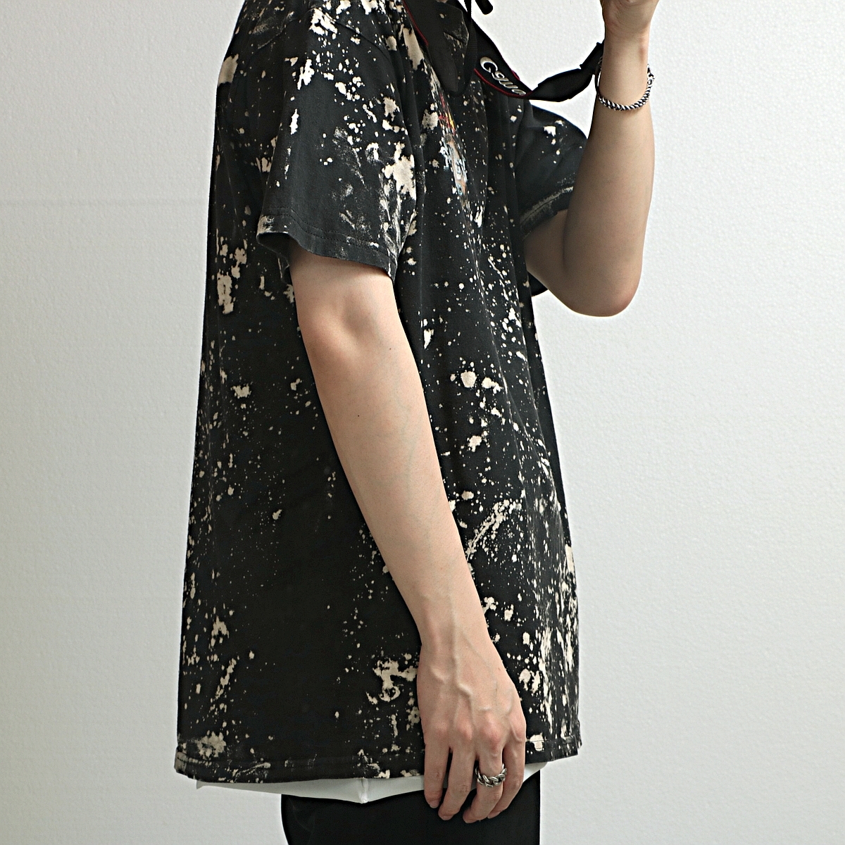 既存の黒Tシャツをブリーチ加工された1枚。
