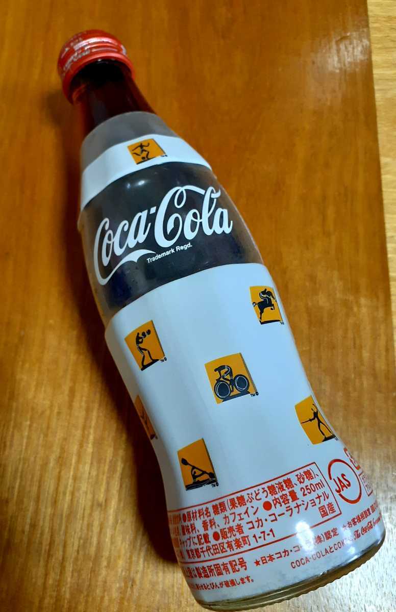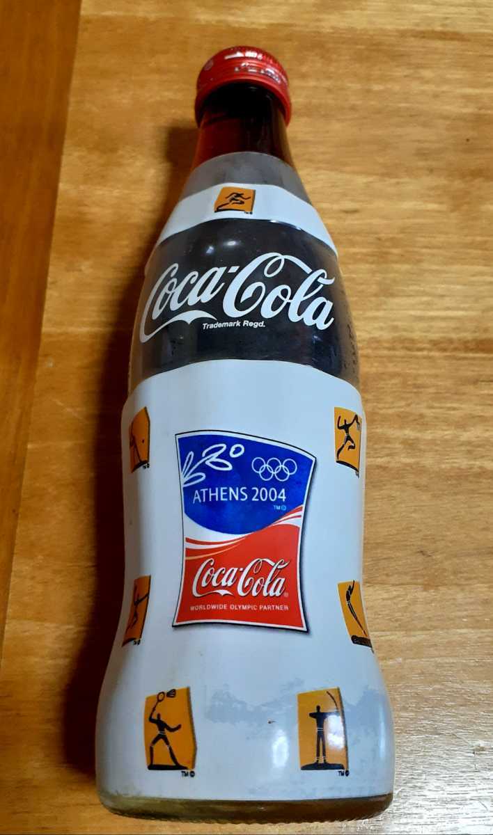 2004年アテネ五輪デザインラベルの瓶コーラになります。