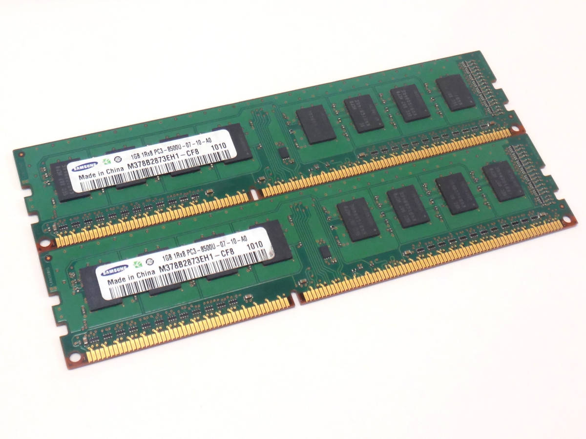 T3M08●【動作確認品】2枚組 Samsung DDR3 1GB×2枚 PC3-8500U デスクトップ用 メモリ 合計2GB 【メール便対応】