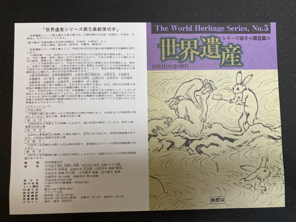 ☆★☆記念切手★世界遺産シリーズ第5集★古都京都の文化財(京都市、宇治市、大津市)★2001年★80円×10★新品未使用品★送料無料☆★☆