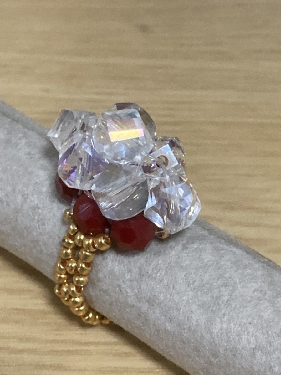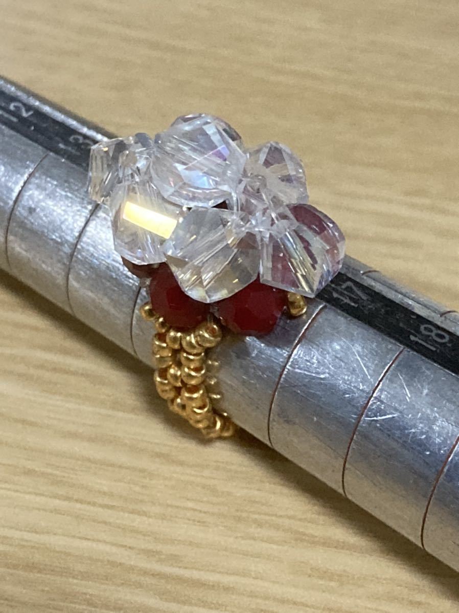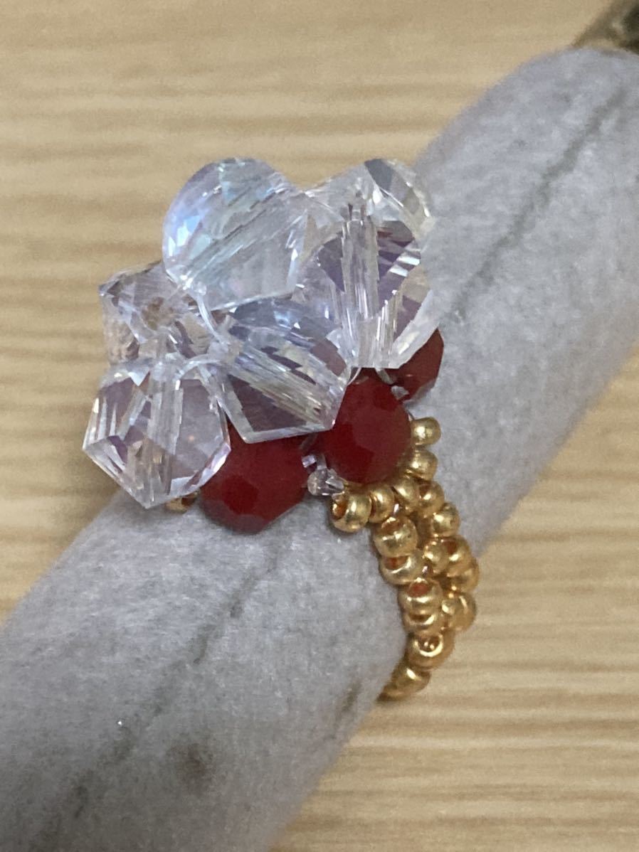 天然石 ビーズリング(ハンドメイド)スワロフスキー