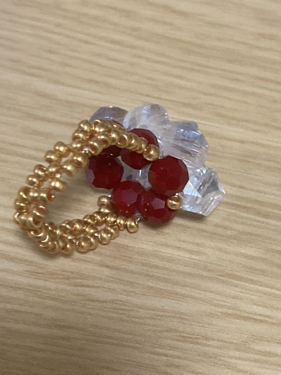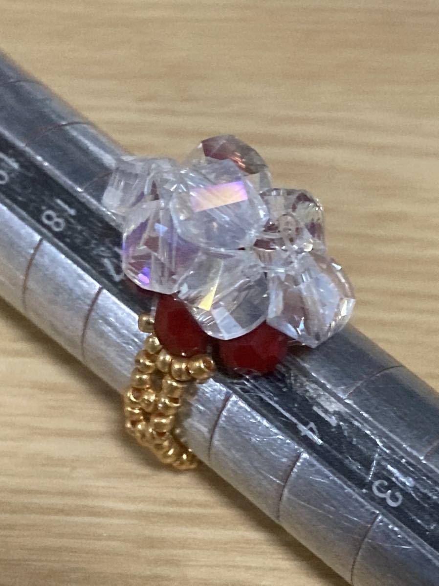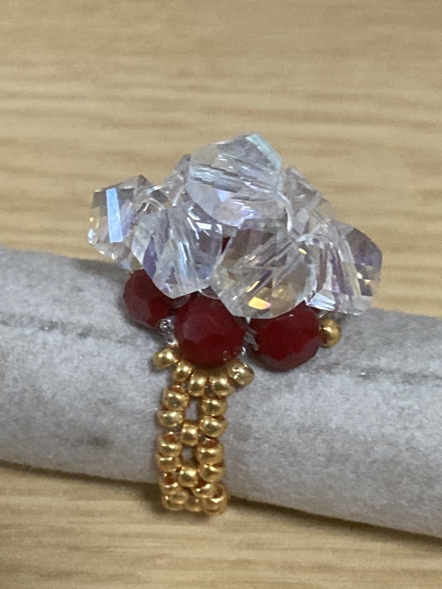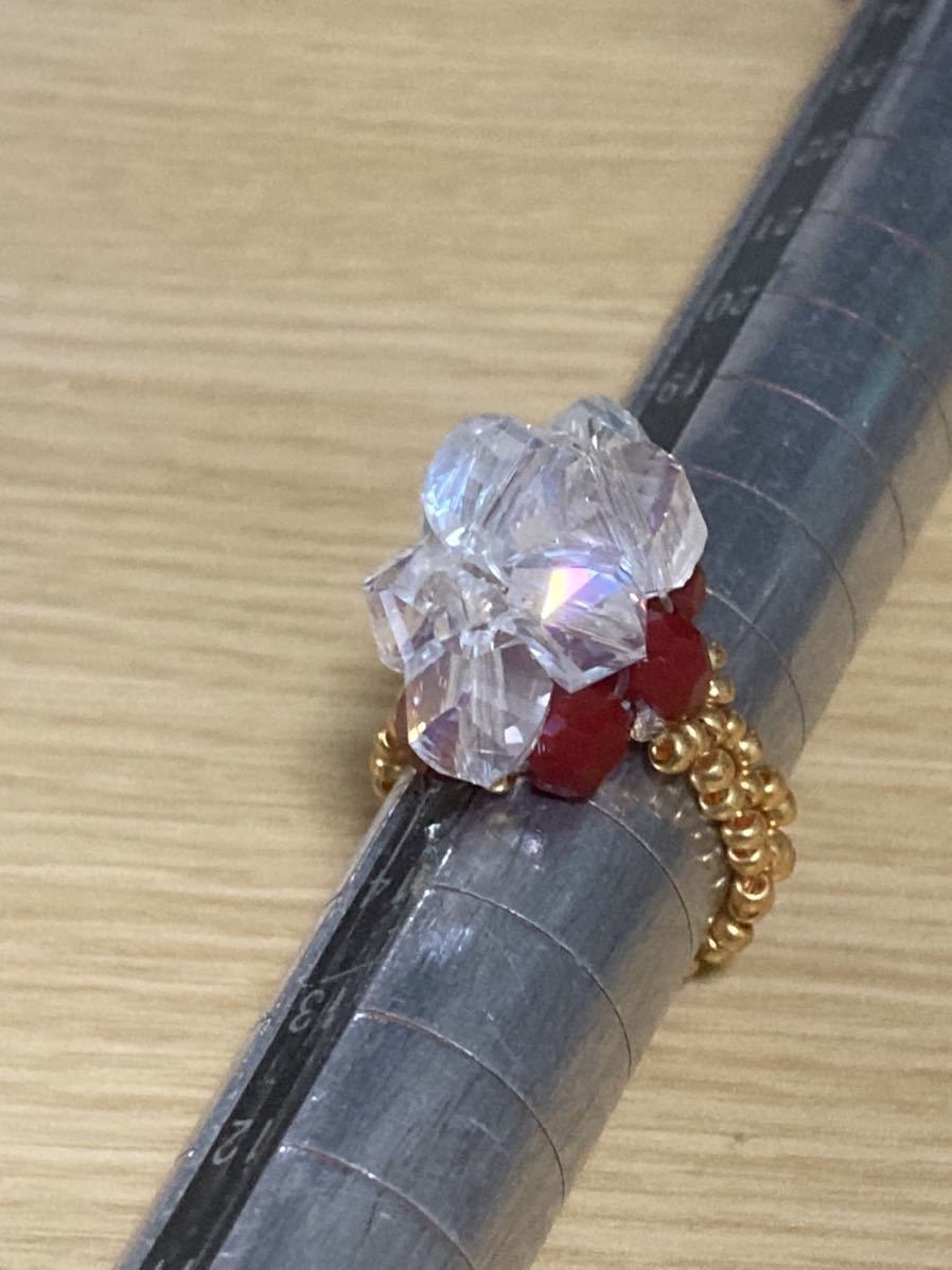 天然石 ビーズリング(ハンドメイド)スワロフスキー