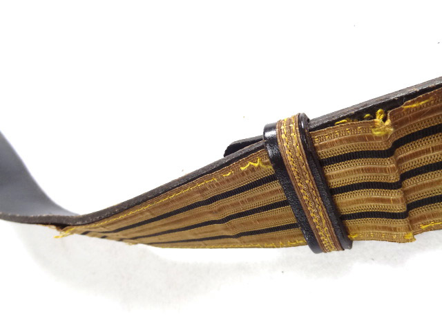 コンディション:皺,薄汚れ,小傷,擦れ,パティーナなどの経年の使用感はあります。ベルト先端の表面に剥げあり,金糸の布素材とベルトのステッチほつれにより離れた箇所が複数あり(縫い付けるか接着でリペア可能)。その他の細かいものは全て記述することは出来ません。目立つものや目立つ箇所を撮影してありますので画像にてご確認ください。着用に支障のあるダメージなどはありません。