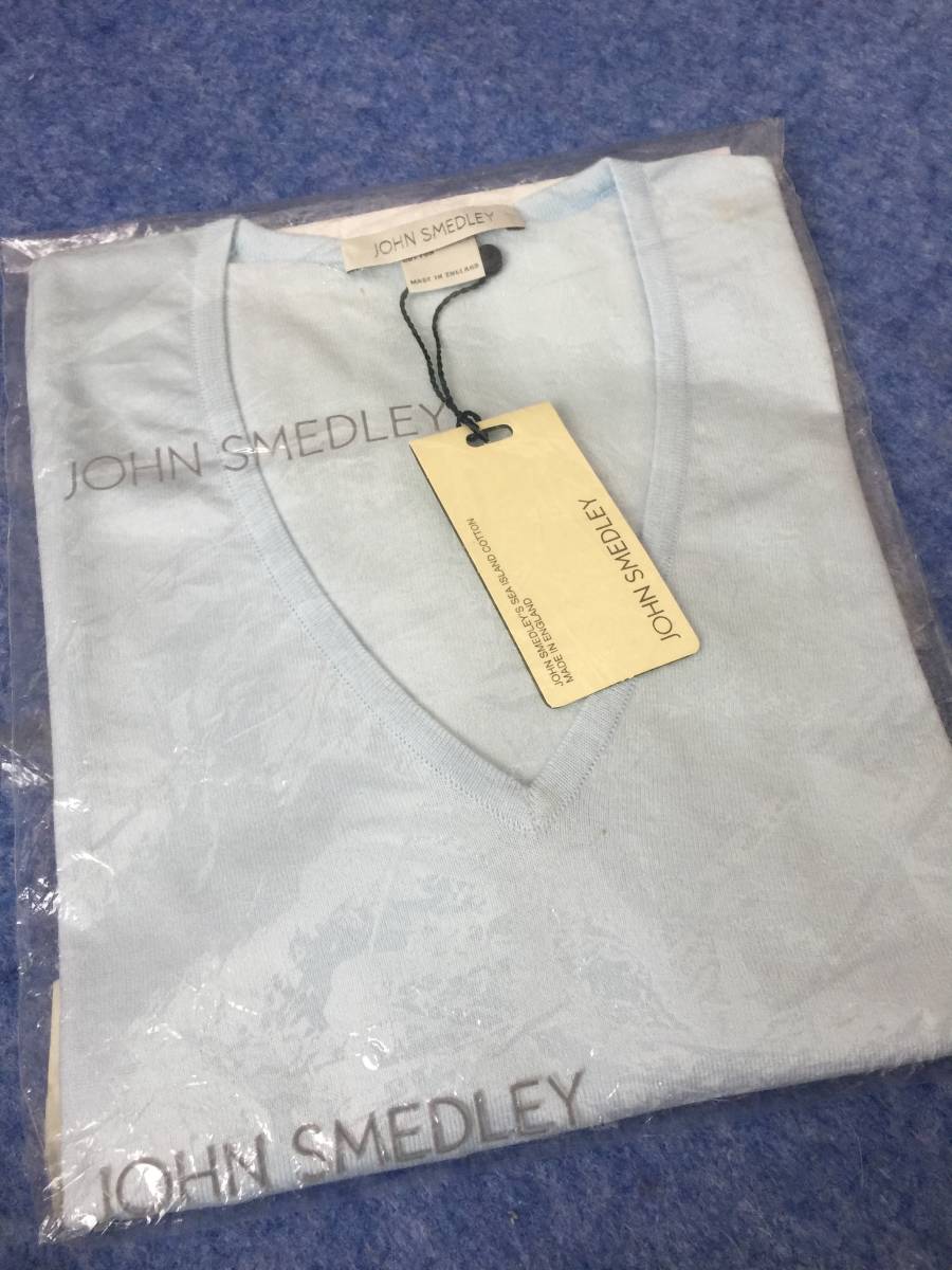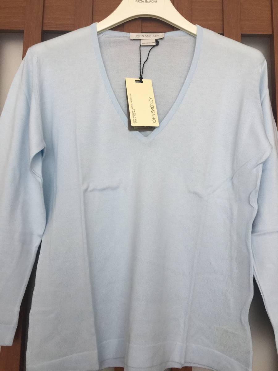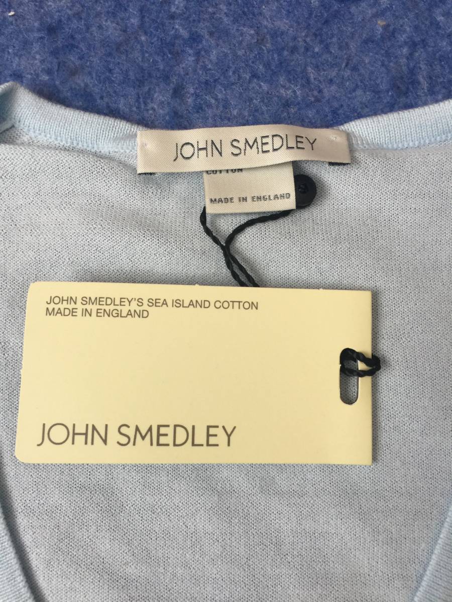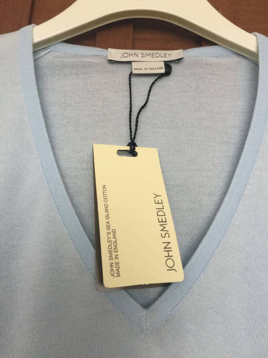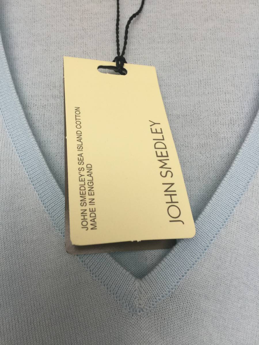 S◆ジョンスメドレー JOHN SMEDLEY◆未使用 カットソー◆Vネック シーアイランドコットン ロイヤルアイスブルー MADE IN ENGLAND シミ有