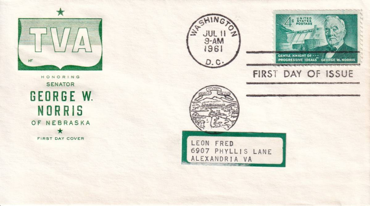 【FDC】ジョージ・W・ノリスとノリス・ダム(1961年)(1)(アメリカ)実逓 t2456