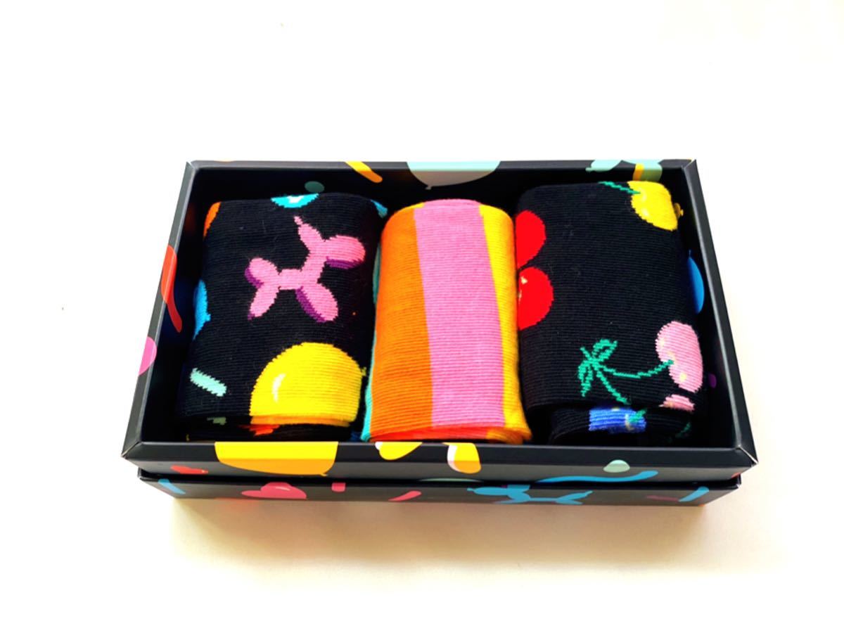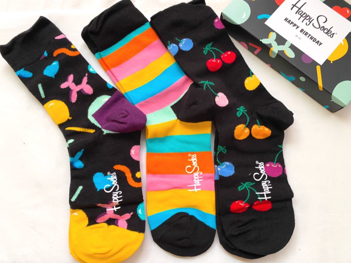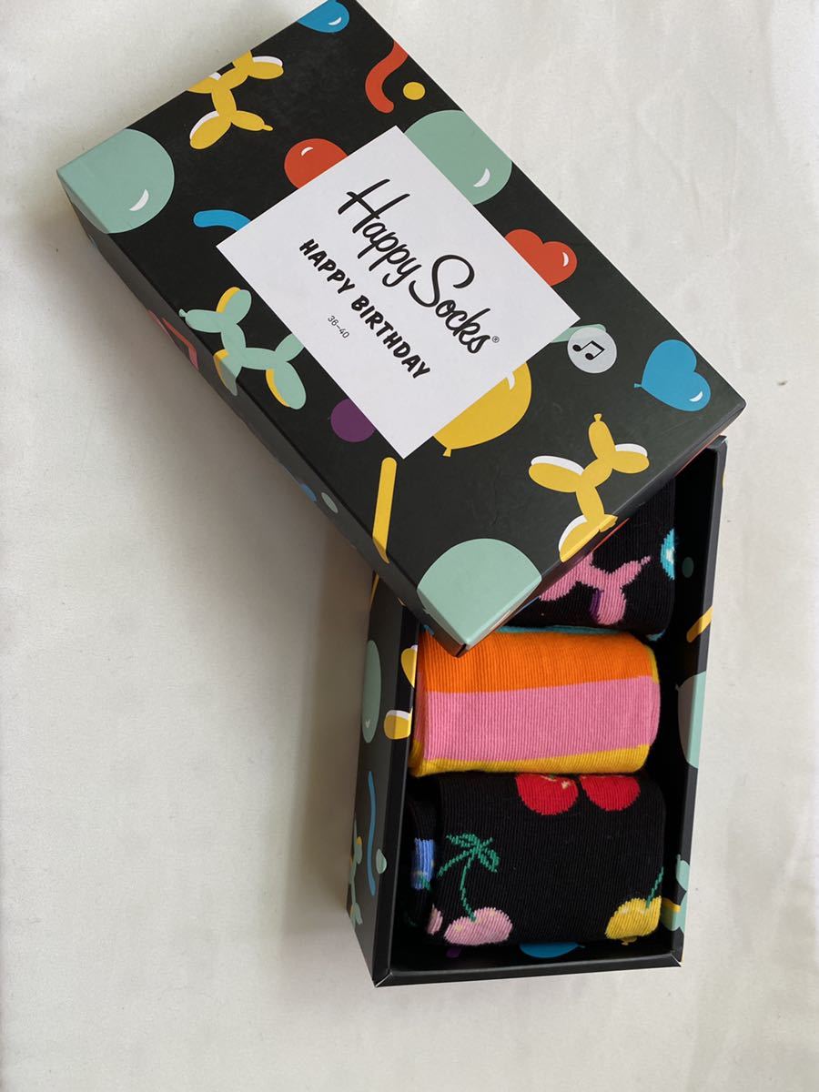 新品 ハッピーソックス★4950円 化粧ボックス入りソック3足入 23-25.5cm happy birthday ハッピーバースデー