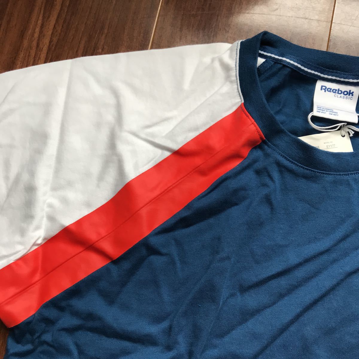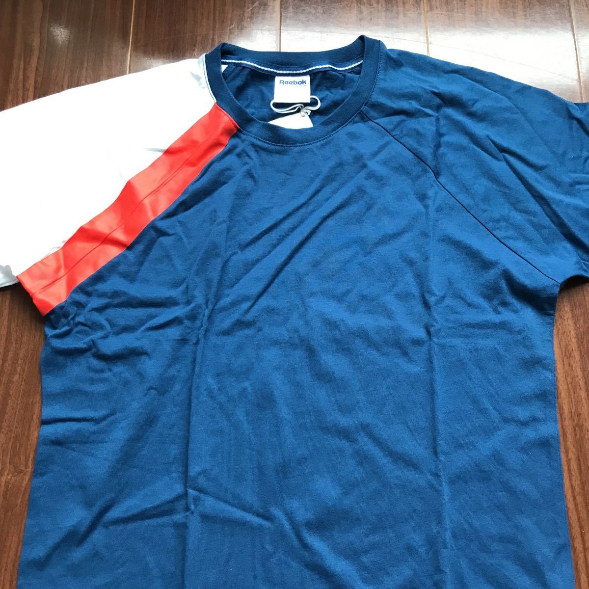 Reebok リーボック 半袖Tシャツ S ブルー 白 切り替え チェスト85-91 身長162-168
