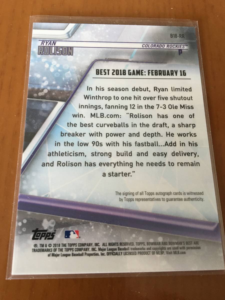 【Rockies/Ryan Rolison】 2018 Bowman’s Best Auto