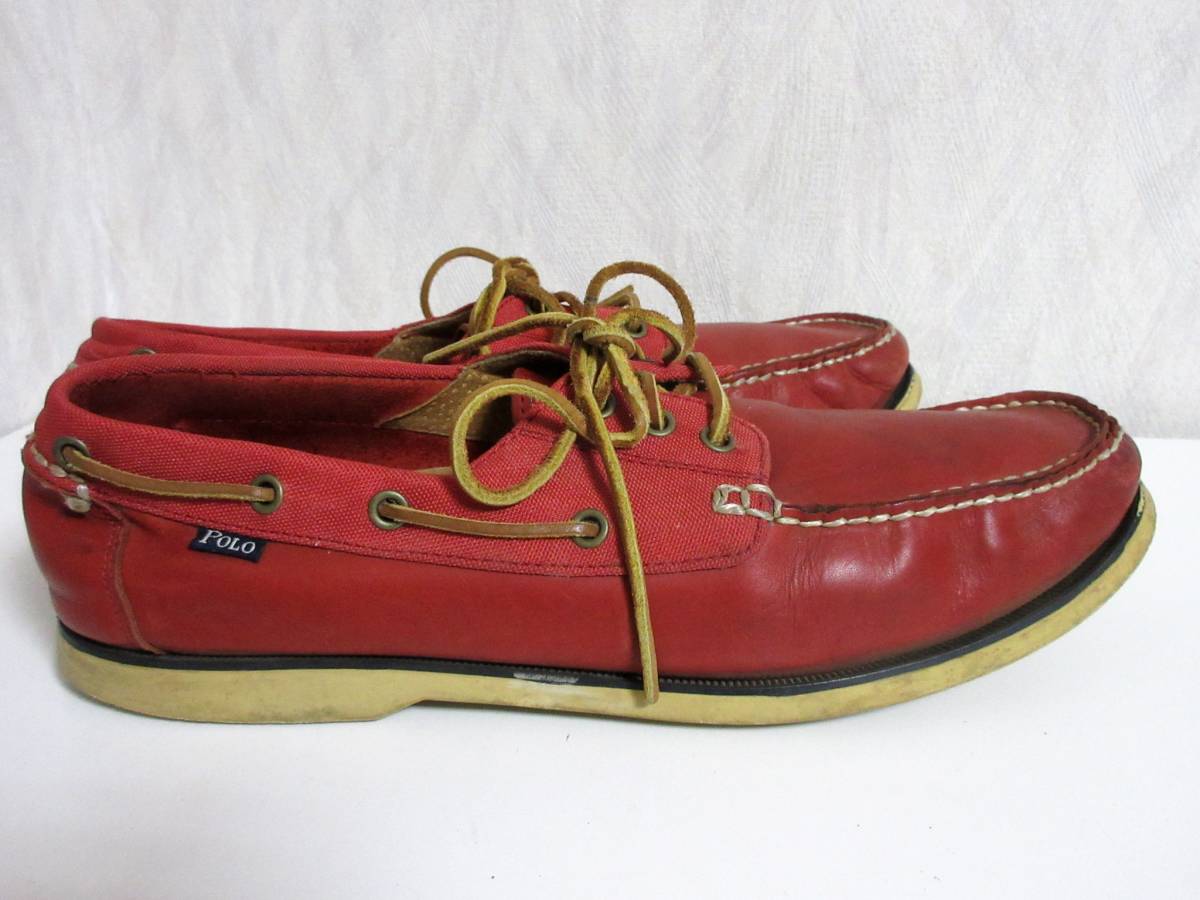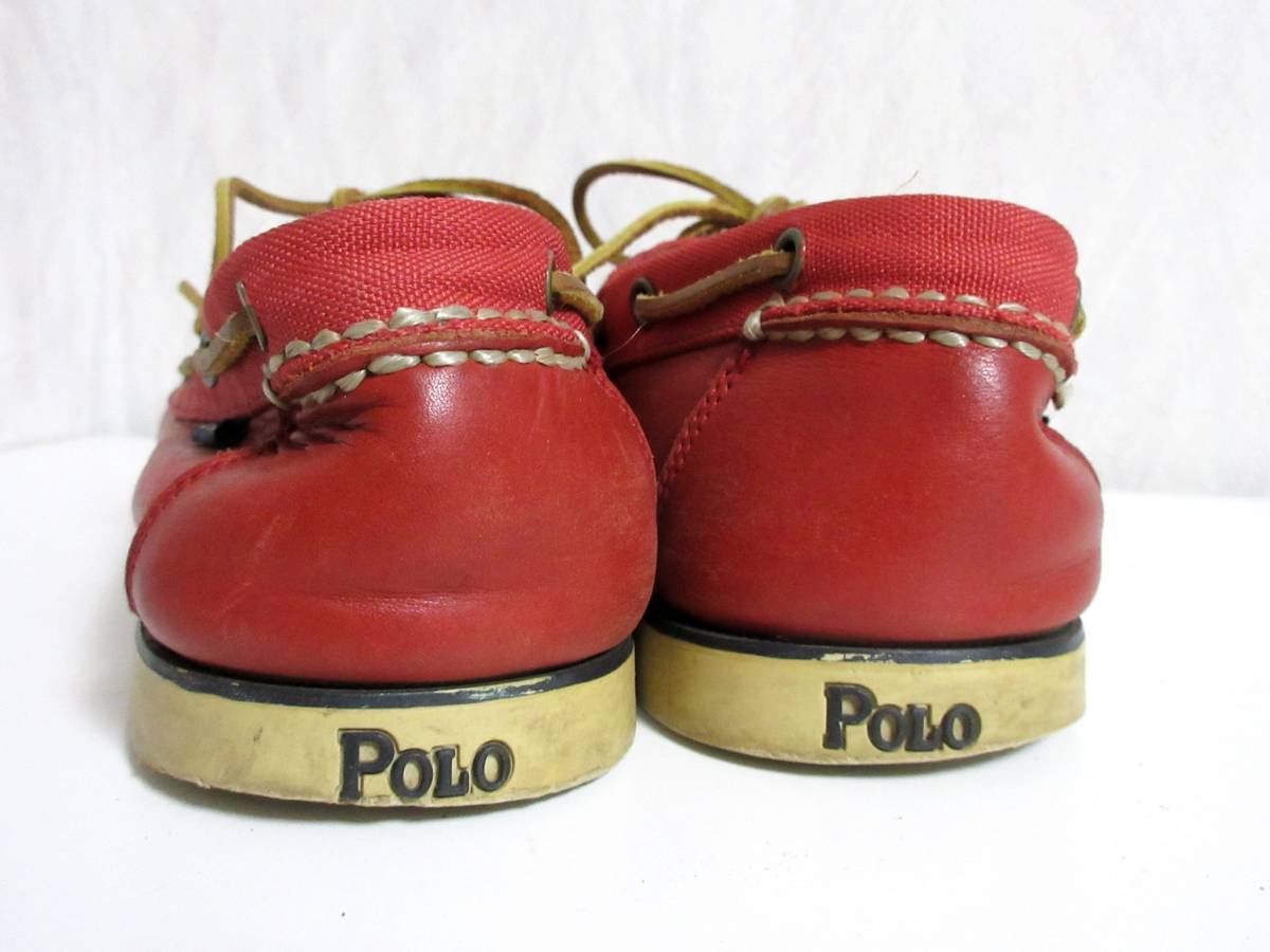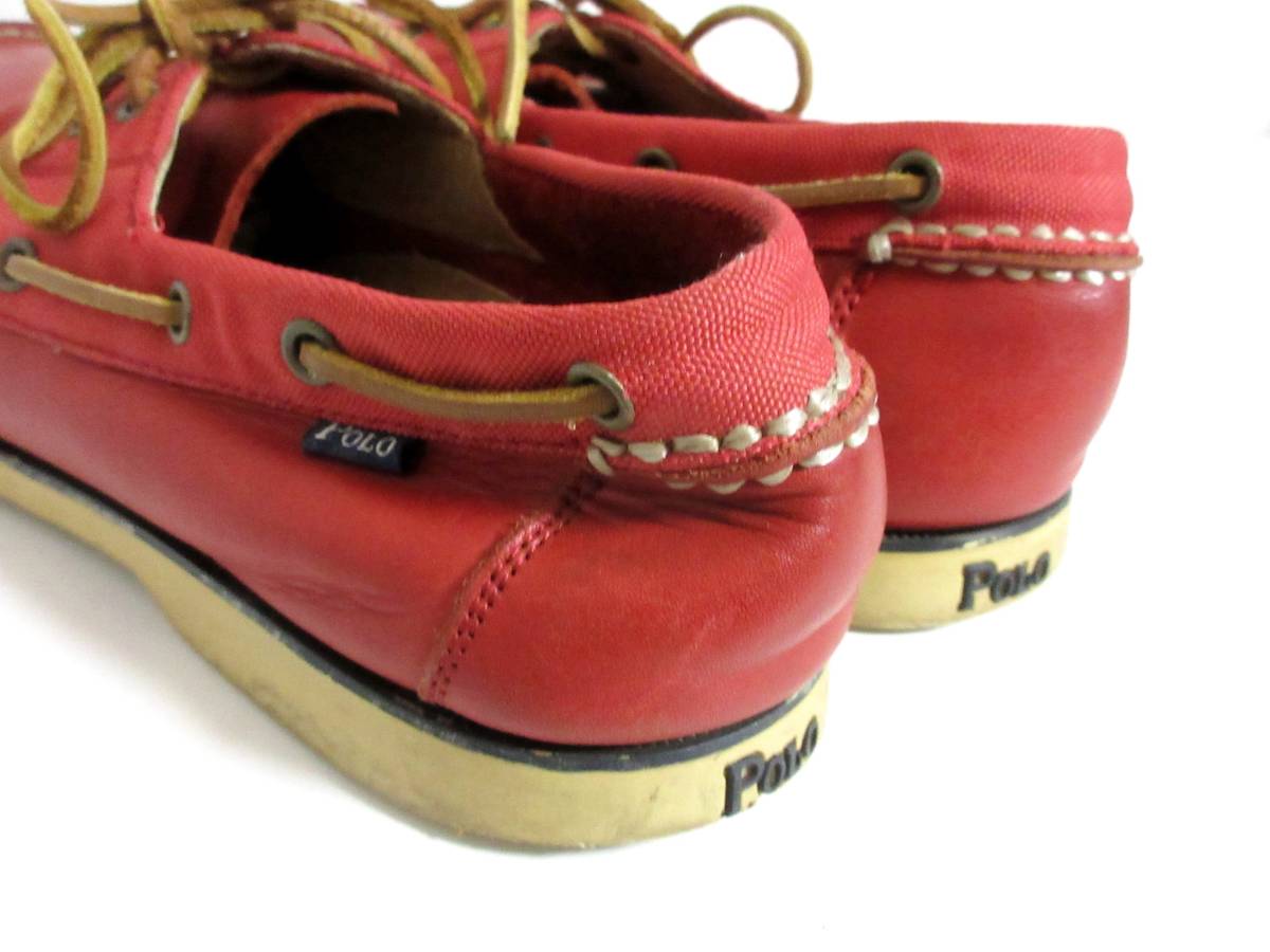 ポロ POLO レザー × キャンバス デッキシューズ 赤 北2707