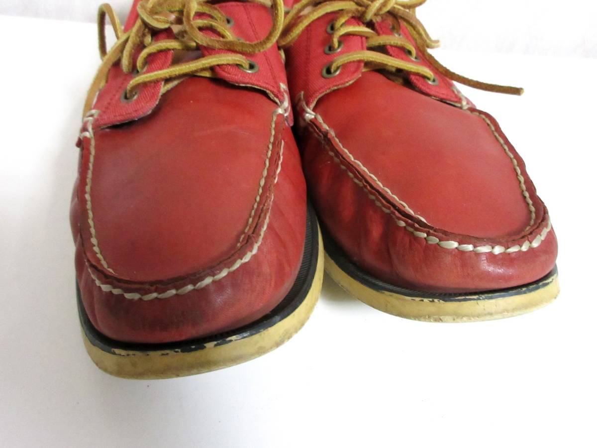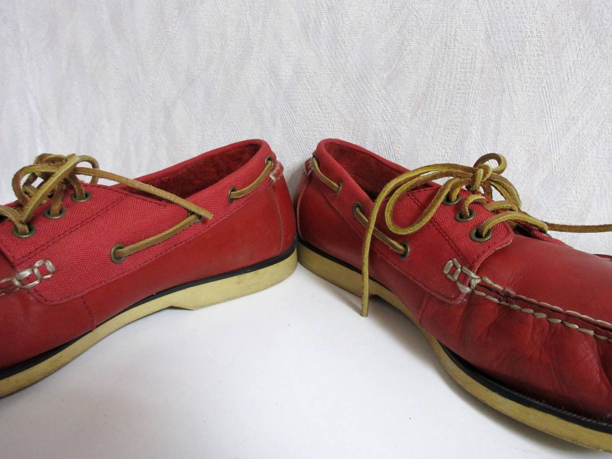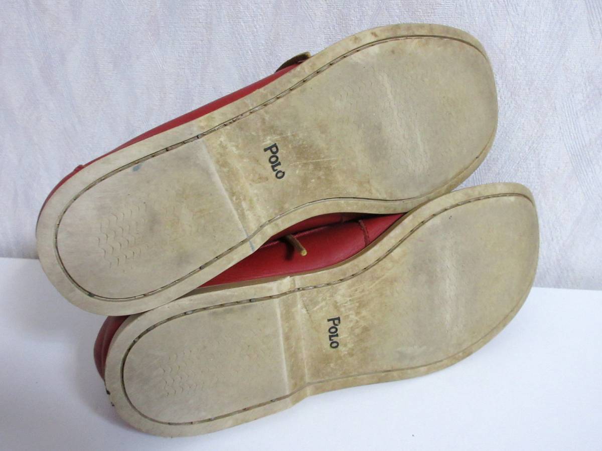 ポロ POLO レザー × キャンバス デッキシューズ 赤 北2707
