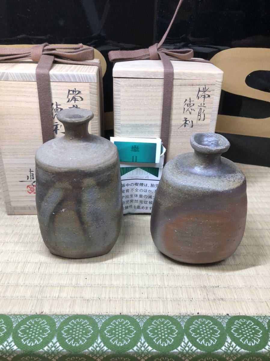 備前 備前焼 酒器の神様 中村六郎 長男 中村眞 中村真 徳利 二本 まとめて 師 金重陶陽 長男 金重道明