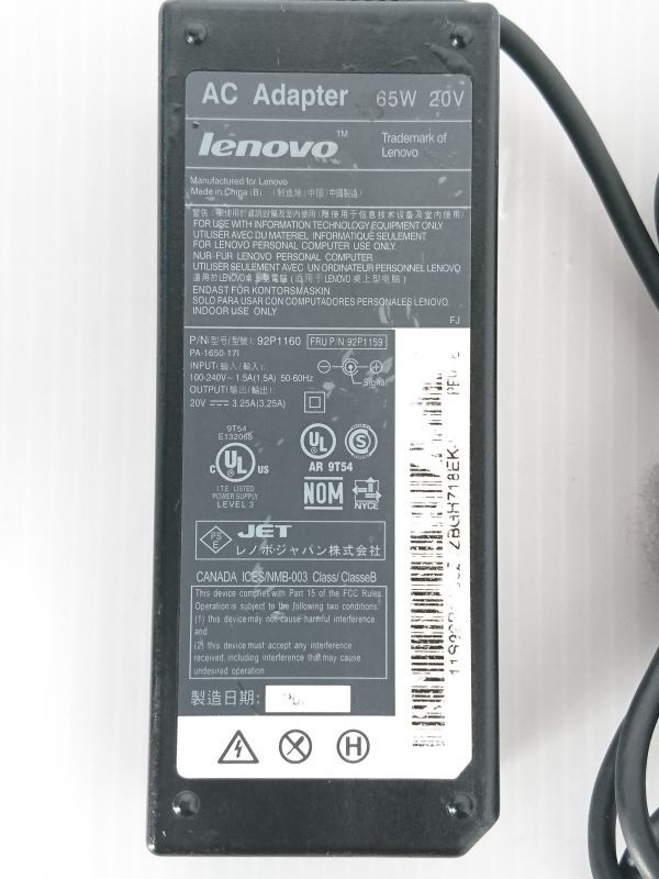 ・メーカー:Lenovo・型番:92P1160 ・INPUT:100V-240V ~ 50/60Hz 1.5A ・OUTPUT:20V 3.25A ■付属品:本体、電源コード