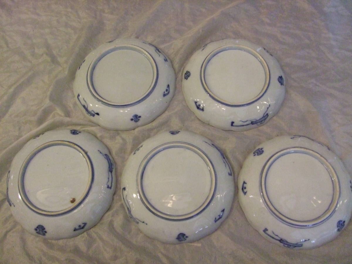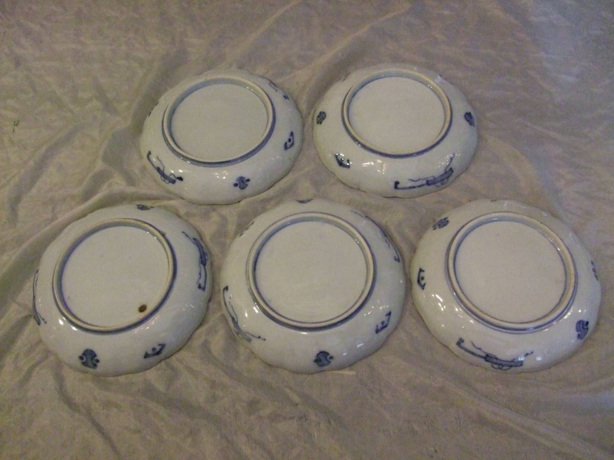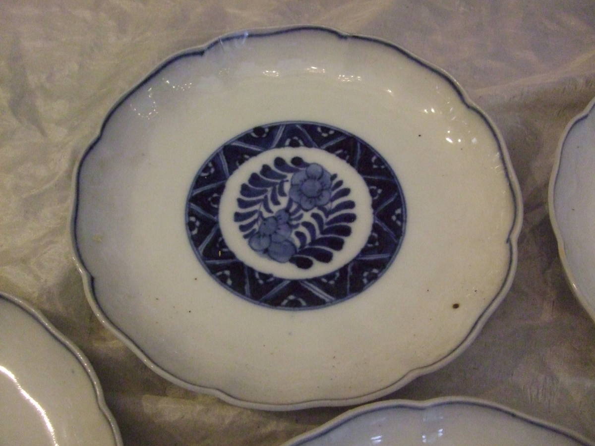■古伊万里 染付 花割吉祥紋 皿5枚組 江戸中期 18,5㎝ 骨董皿 蔵出し物 懐石 和食器■