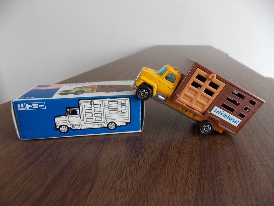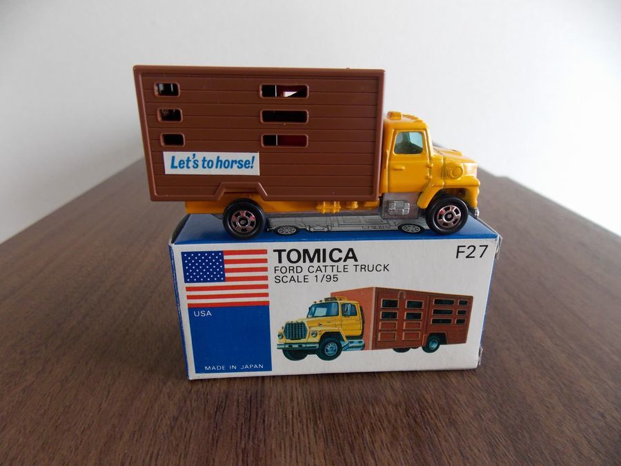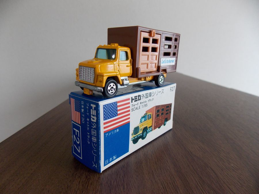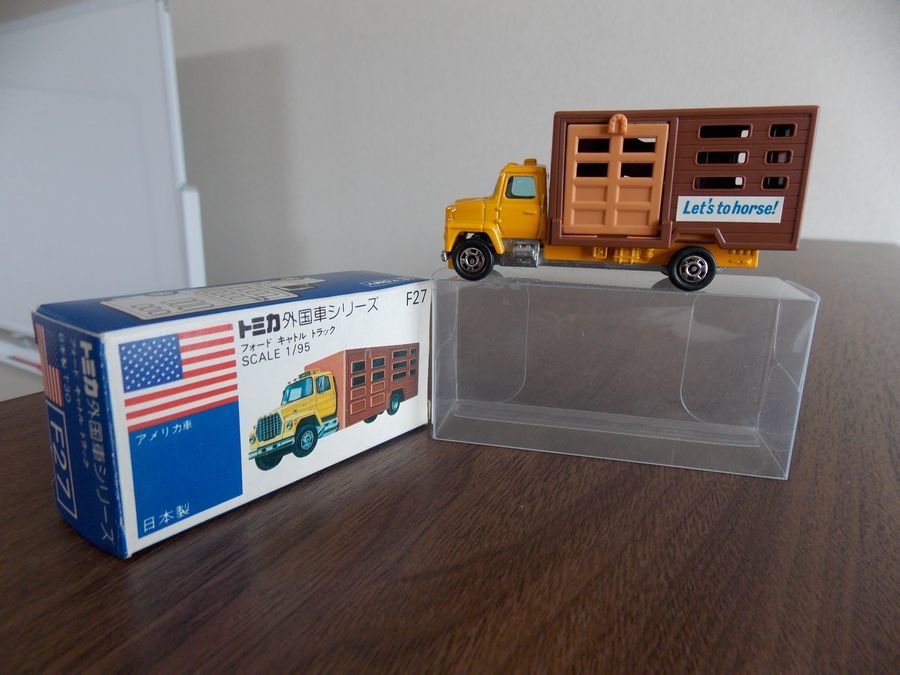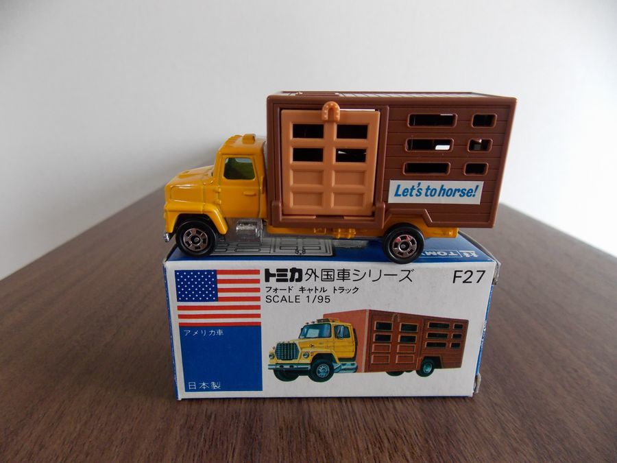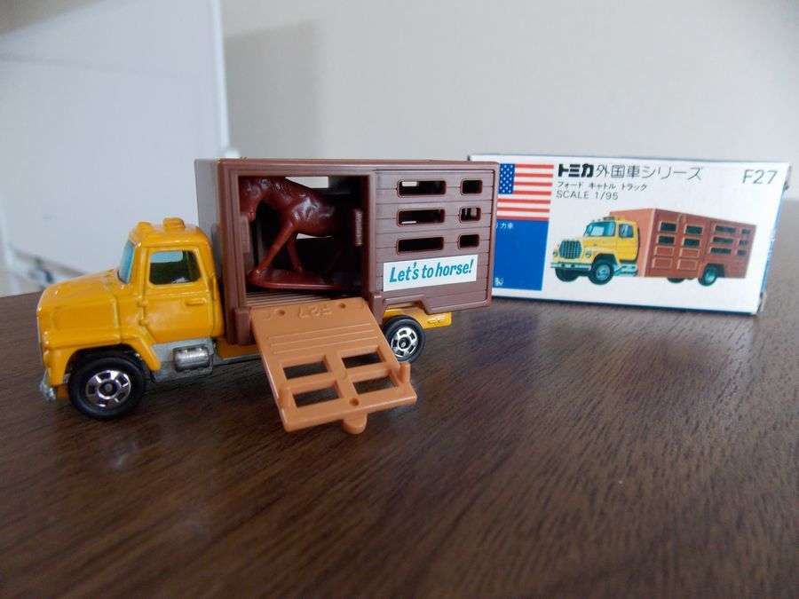 448  トミカ 外国車シリーズ  F27  希少  フォード キャトル トラック (お馬さん輸送車) ・日本製 T30  ・サイドドアー開閉可能  ・サスペンション  ・SCALE 1/95  ・透明ケース付