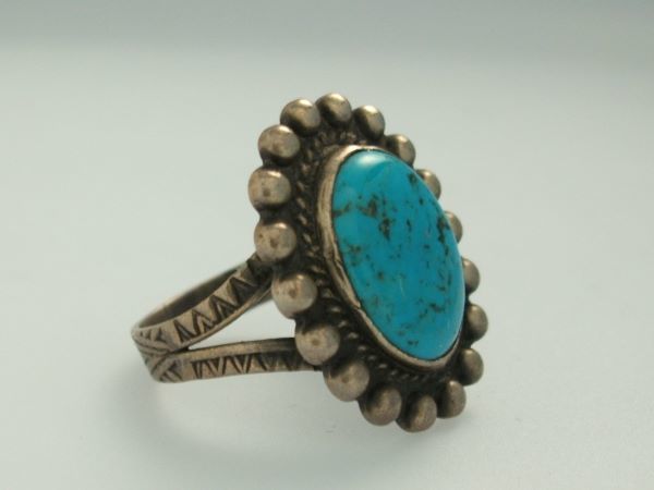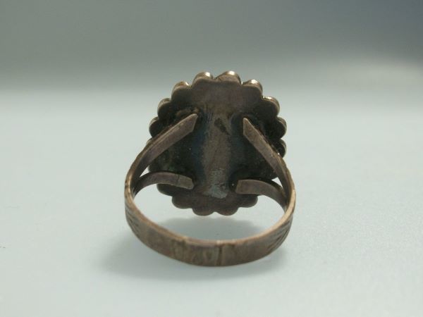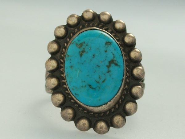 商品説明 | ターコイズが付いたオールドリングです。 中古入手30年くらい前の作品です。 |