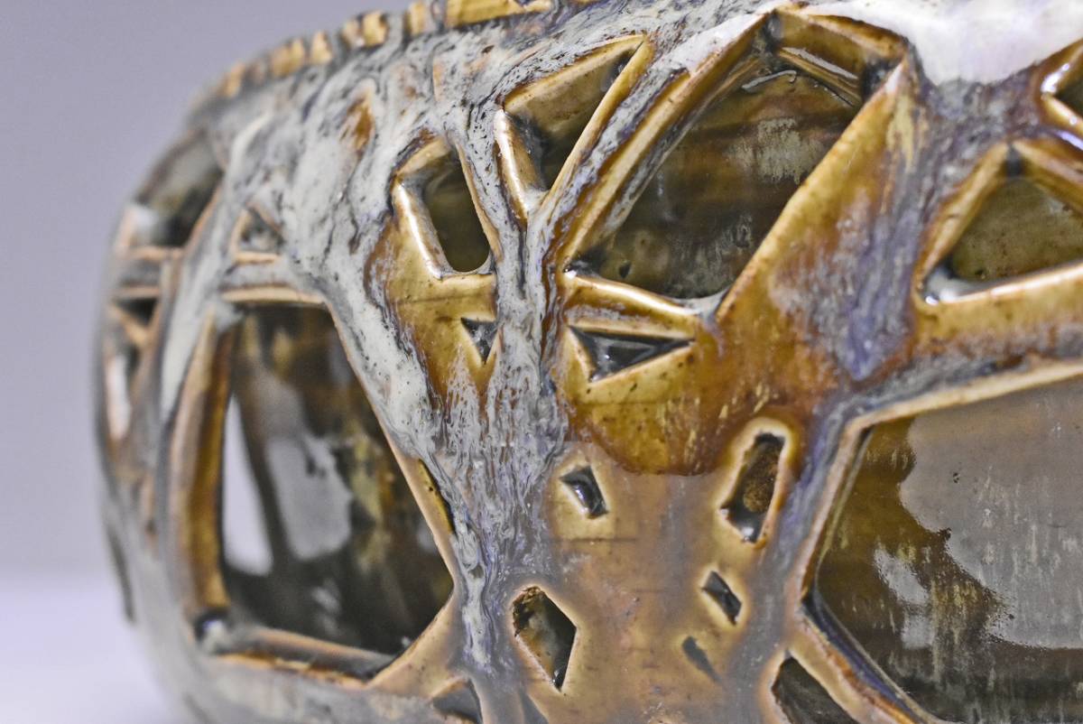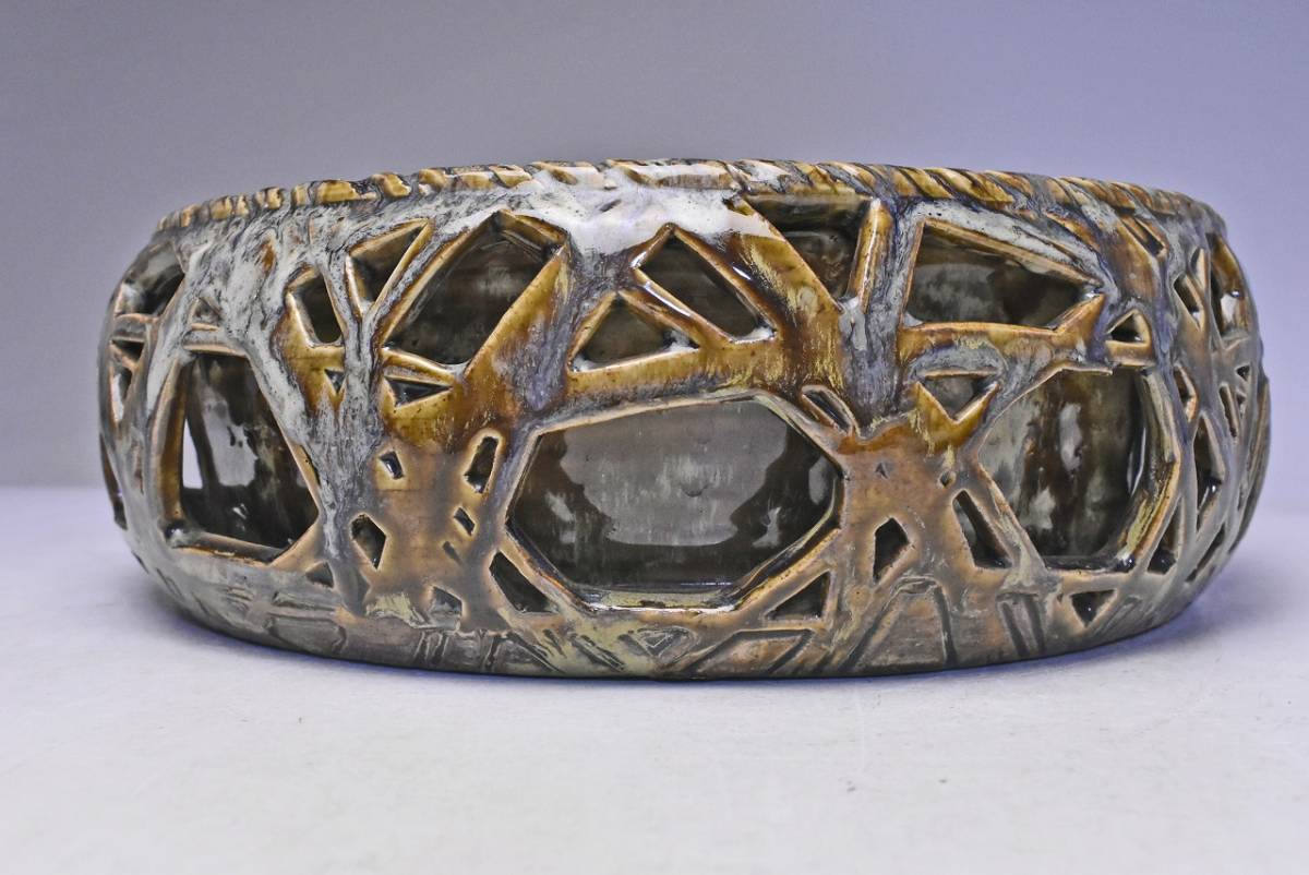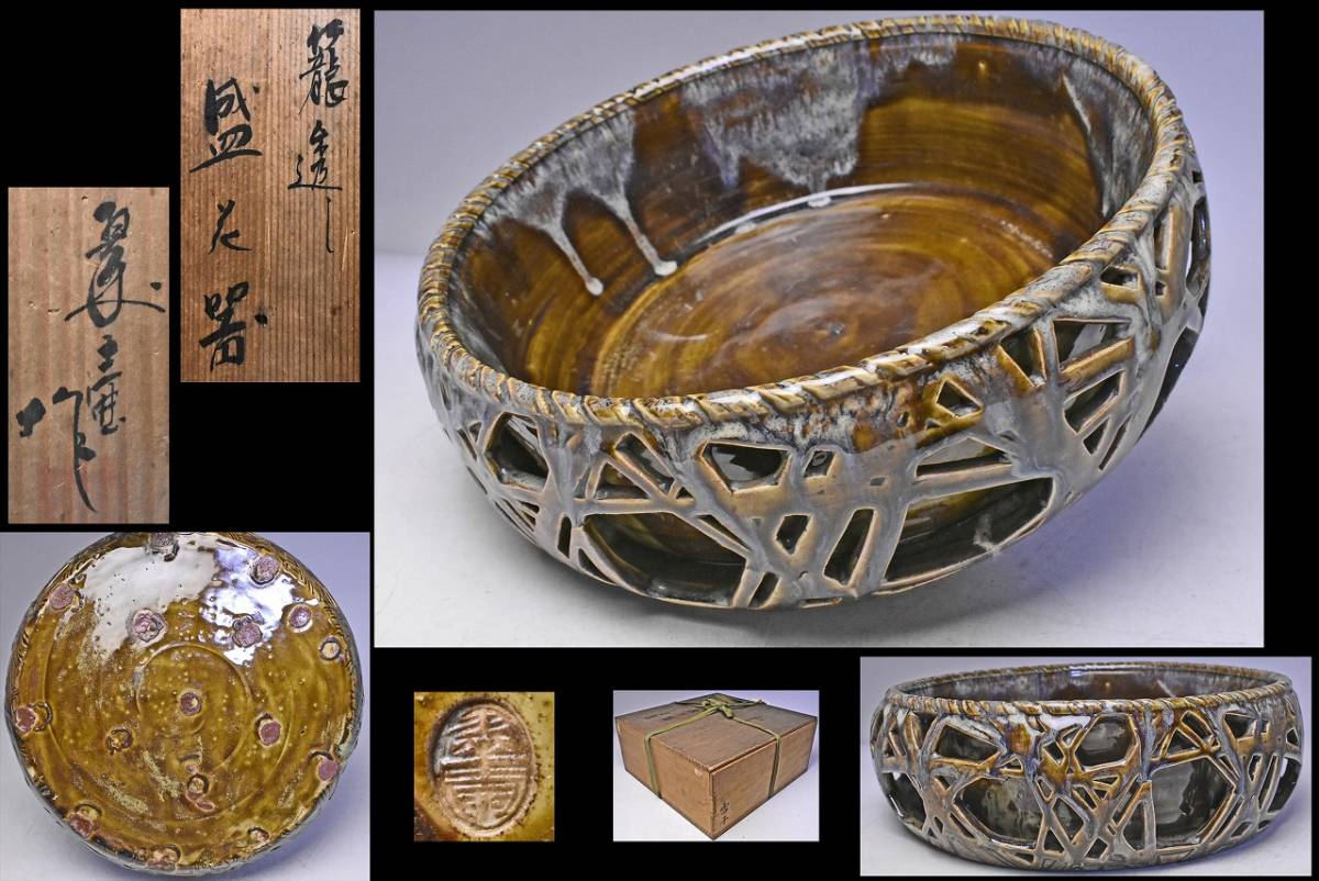 伊東翠壺 ★ 籠透かし盛花器 ★ 共箱 ★ 上作 ★ 鉄釉 ★ 京焼 ★ 清水焼 ★ 透かし彫 ★ 高取焼風 ★ 伊東陶山 伊東慶 縁 ★ 花器