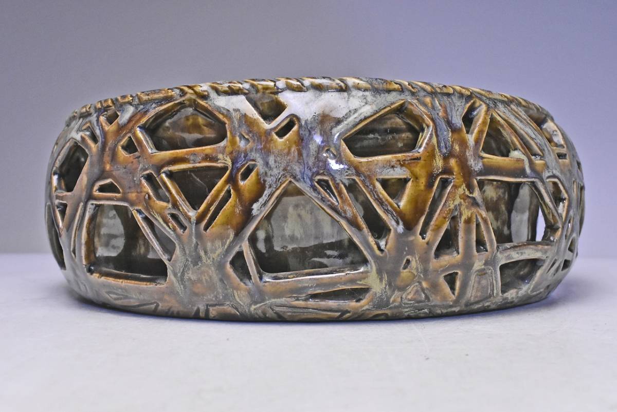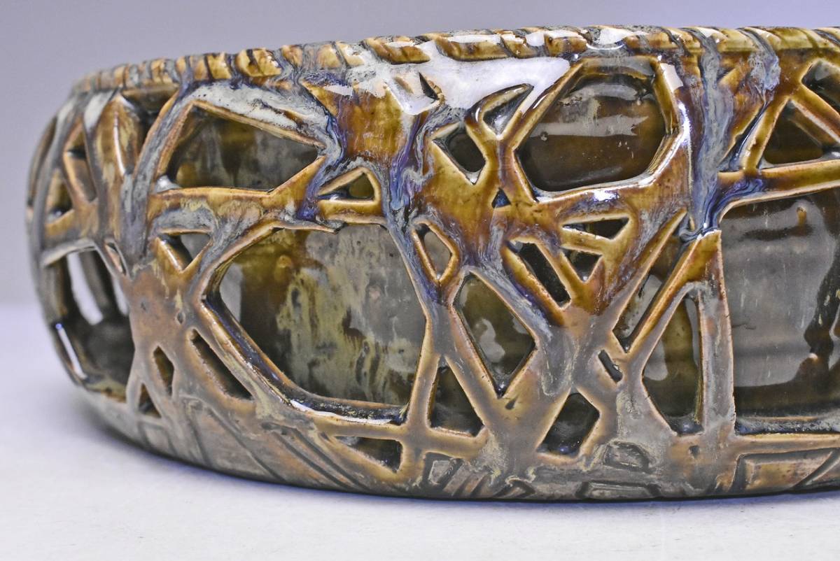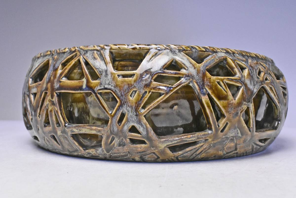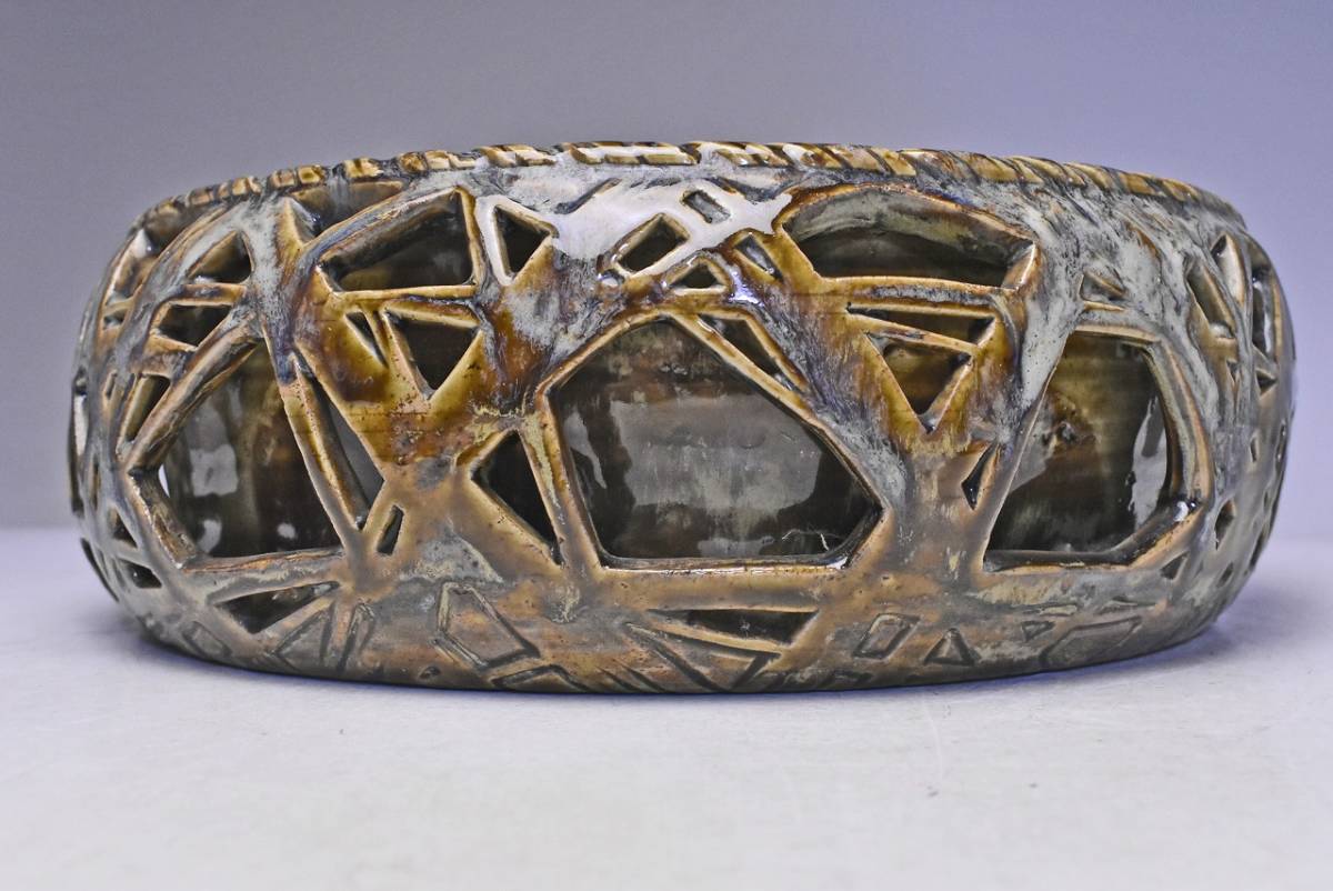 伊東翠壺 ★ 籠透かし盛花器 ★ 共箱 ★ 上作 ★ 鉄釉 ★ 京焼 ★ 清水焼 ★ 透かし彫 ★ 高取焼風 ★ 伊東陶山 伊東慶 縁 ★ 花器