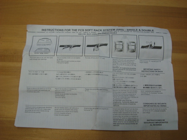 展示品!新品FCS(エフシーエス) DOUBLE SOFT RACKS(ダブルソフトラック)です、詳しい詳細、年式などは解りませんが、突然決まった急なサーフトリップにも大活躍!!取り付取り外し簡単!あっという間に、取り付け完了。取り付け紐を車のドア枠から通して固定するタイプです。FCSカーアクセサリーSOFTRACKSソフトラック ダブルは、 ほとんどのルーフラックなしの車に対応可能なサーフボードキャリアです。あくまで目安ですが、16枚のショートボード、もしくは、14枚のロングボードが運べます。この商品は全くの新品ですが、お店の展示品だった為、汚れなどございまして、もしかしたら、経年劣化している部分があるかもしれませんが、予め、ご了承、ご理解頂いた上、ご購入下さい!なお、別アカウント(IDlipelalaでも商品の方、出品させて頂いておりますので、もし宜しければ、ご覧頂けましたら幸いでございます!色の方は、各パソコン、デジカメによって多少異なりますので、ご了承下さい、ノークレーム・ノーリターンでお願いいたします。ご質問に関しましては、火曜日を除く、午後12~午後9(21)時までに、お早めにお願い致します。この商品以外も、その他、色々出品しておりますので、是非ご覧下さい。