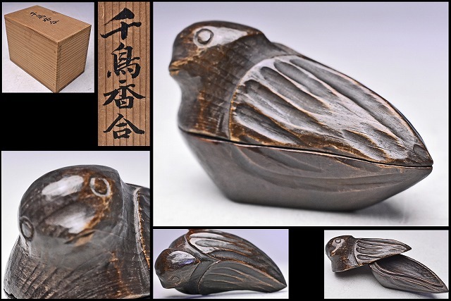 木彫 千鳥 香合 ★ 木箱 ★ 香道具 茶道具 ★ 味わいが良くやや時代を感じさせる逸品 ★