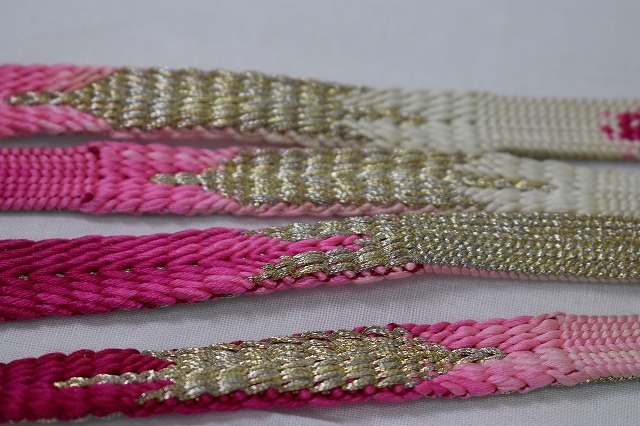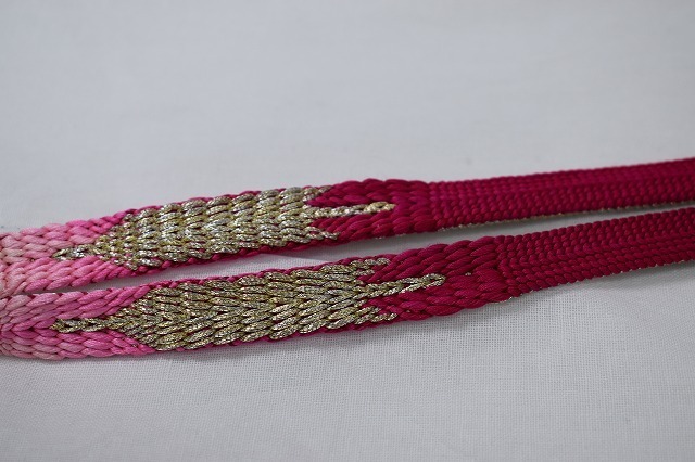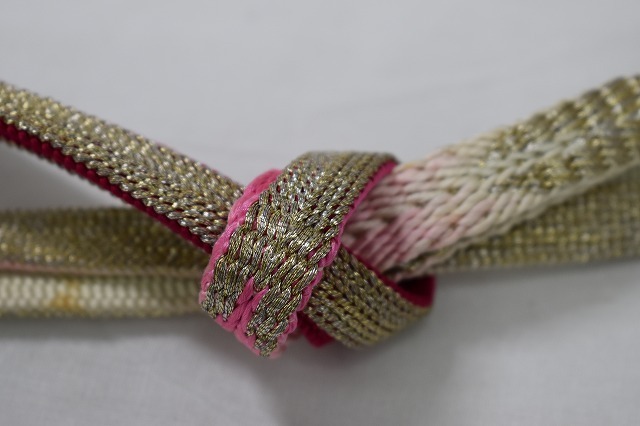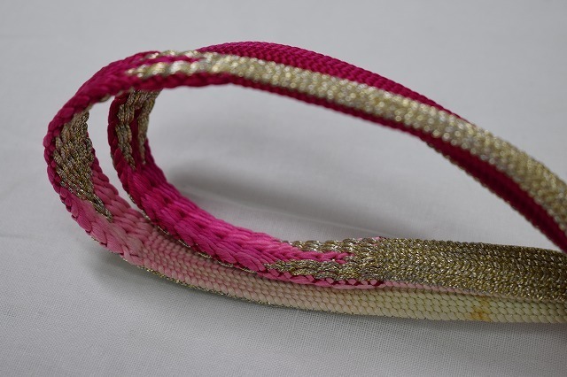 帯締め 正絹 平組 金・白・ピンク・マセンダ 和装小物 中古 oj135 ★喜香★