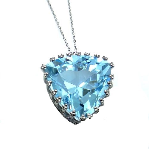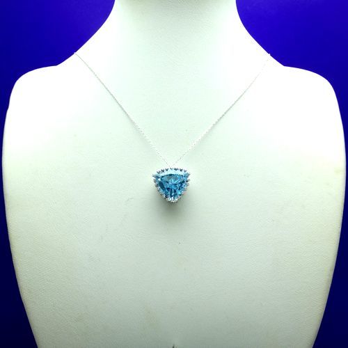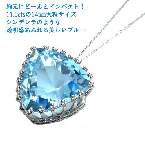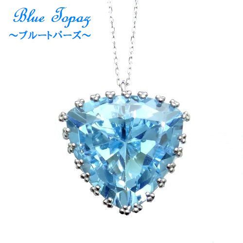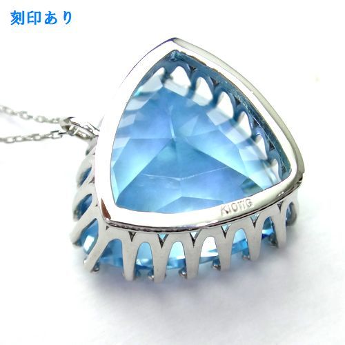 K10WG ブルートパーズ 11.5cts トリリアント 14mm ペンダント ネックレス 40cm 大粒 大きいサイズ ジュエリー 三角形 11月誕生石 箱付き