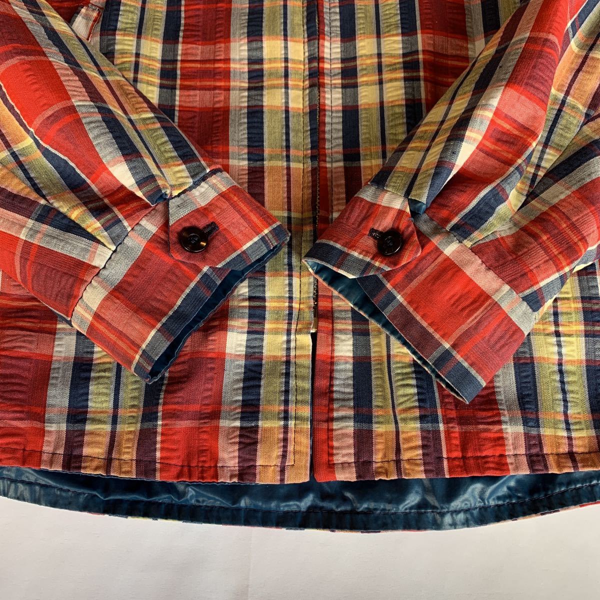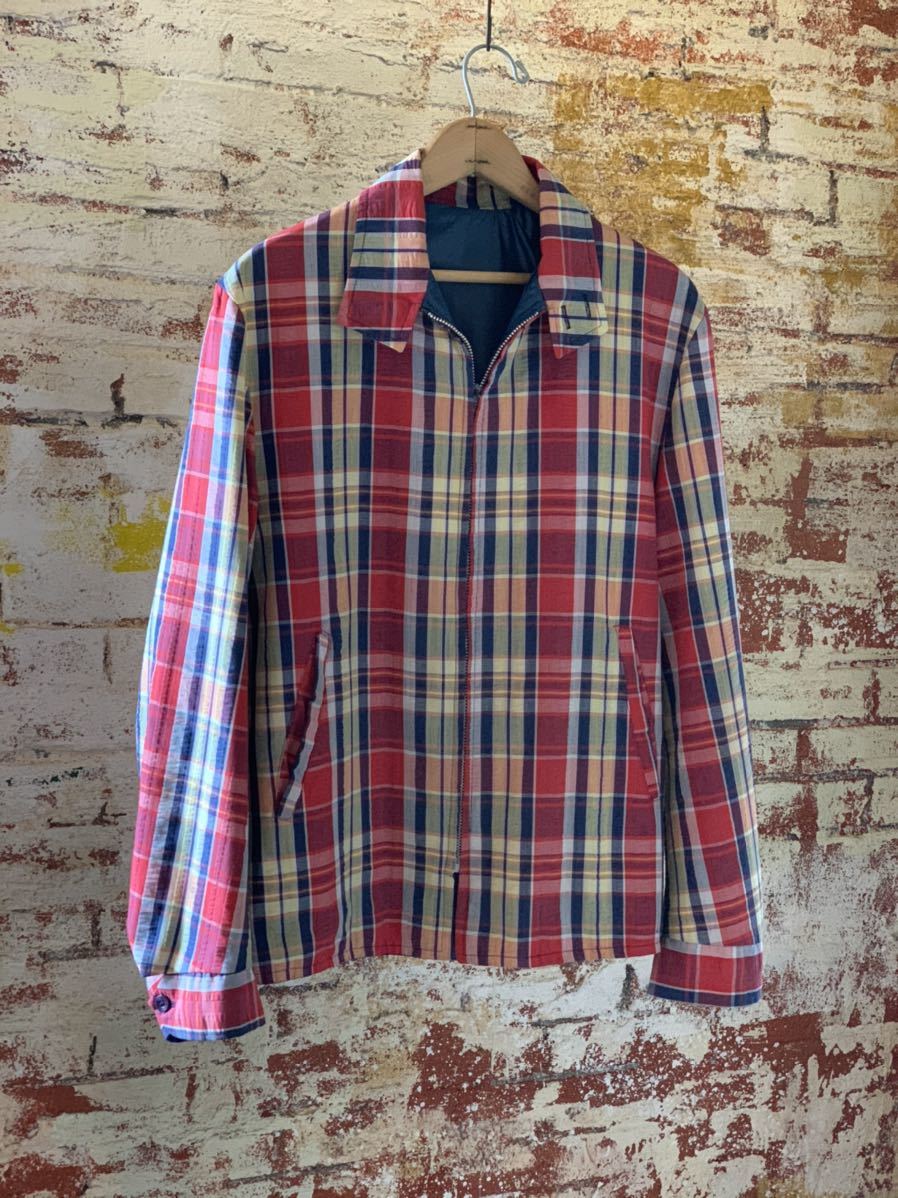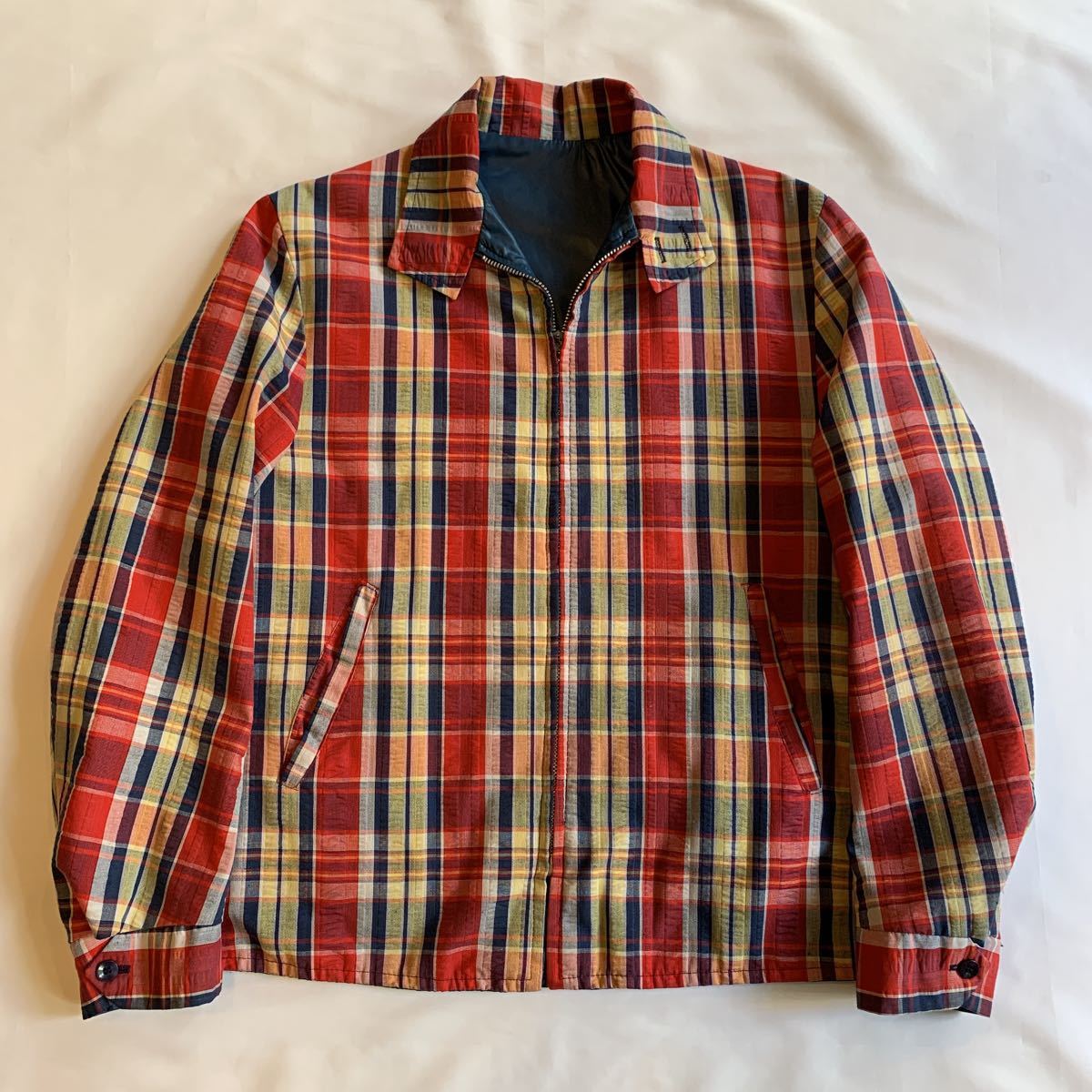 チェックとナイロンのリバーシブルデザインのスウィングトップになります。チェック面はシアサッカー生地が使われています。この様なデザインのスウィングトップは数が少なく、お探しの方も多いと思います。サイズ感も良いのでオススメですよ。お探しだった方は是非ご検討ください。